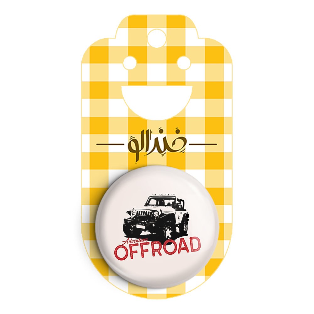 مگنت آفرود Off Road خندالو با روکش سلفون مات مخملی ضدخش و قطعه پشتی فلزی تولید شده است که آهنربای اتمی بکار برده شده در محصول، بصورت مخفی تعبیه شده ودیده نمی شود. ضمن اینکه گیرایی بسیار بالایی داشته و به هیچ عنوان از روی یخچال نمی افتد.