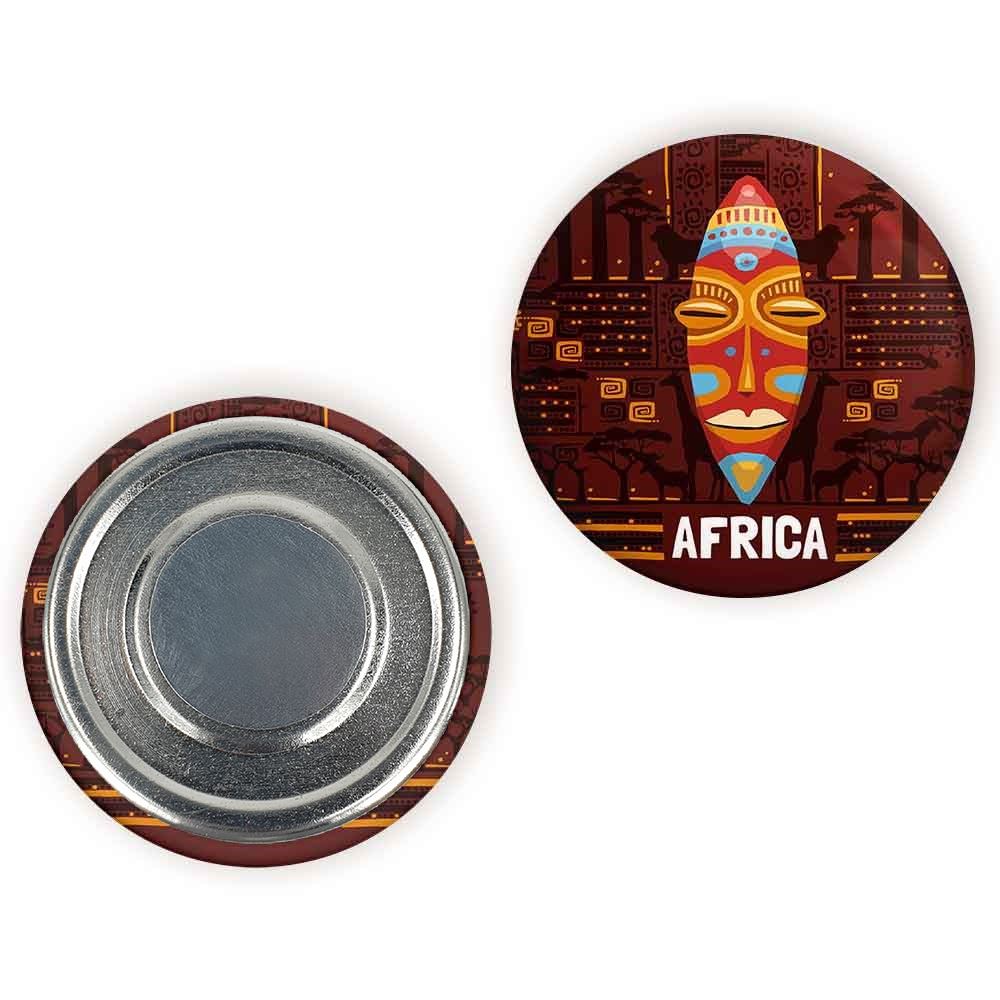 مگنت آفریقا Africa خندالو با روکش سلفون مات مخملی ضدخش و قطعه پشتی فلزی تولید شده است که آهنربای اتمی بکار برده شده در محصول، بصورت مخفی تعبیه شده ودیده نمی شود. ضمن اینکه گیرایی بسیار بالایی داشته و به هیچ عنوان از روی یخچال نمی افتد.