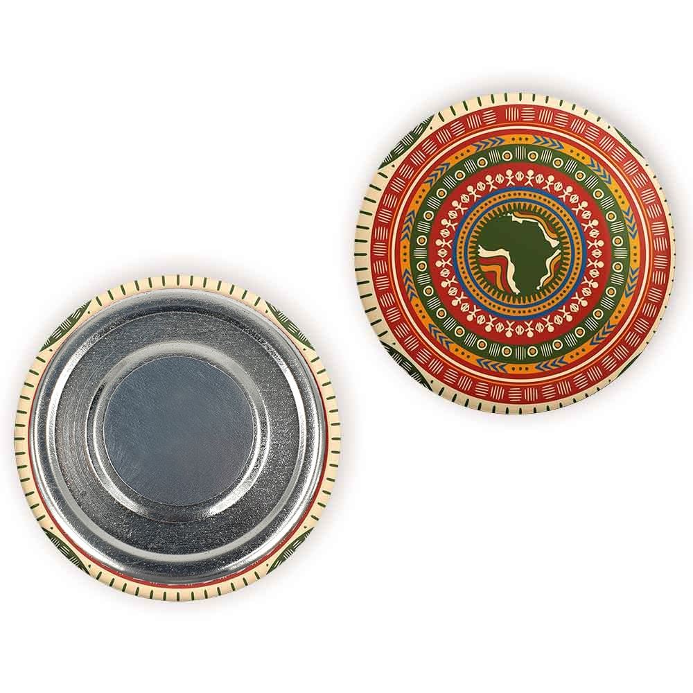 مگنت آفریقا Africa خندالو با روکش سلفون مات مخملی ضدخش و قطعه پشتی فلزی تولید شده است که آهنربای اتمی بکار برده شده در محصول، بصورت مخفی تعبیه شده ودیده نمی شود. ضمن اینکه گیرایی بسیار بالایی داشته و به هیچ عنوان از روی یخچال نمی افتد.
