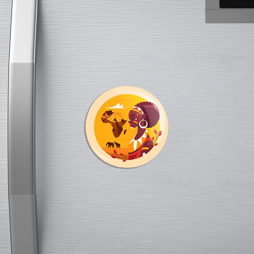مگنت آفریقا Africa خندالو با روکش سلفون مات مخملی ضدخش و قطعه پشتی فلزی تولید شده است که آهنربای اتمی بکار برده شده در محصول، بصورت مخفی تعبیه شده ودیده نمی شود. ضمن اینکه گیرایی بسیار بالایی داشته و به هیچ عنوان از روی یخچال نمی افتد.
