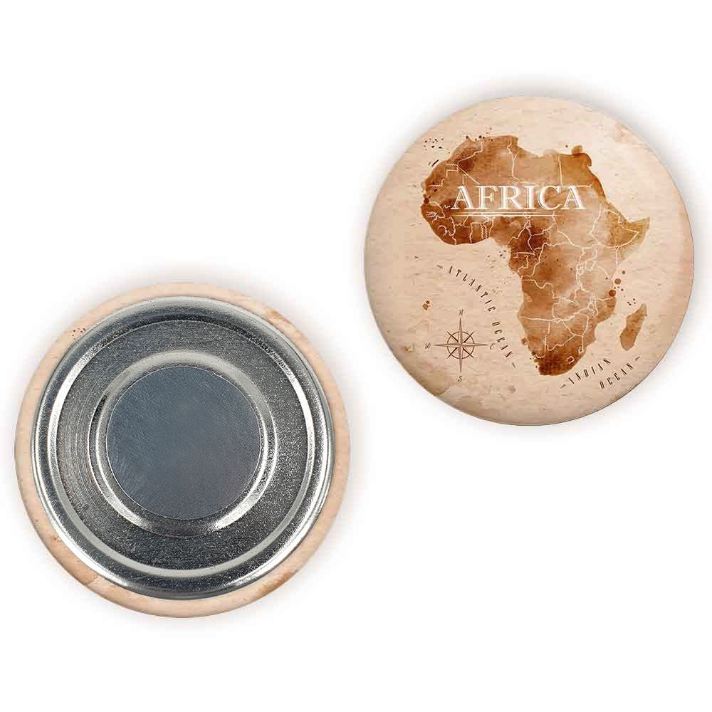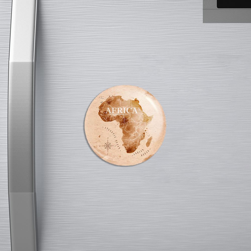 مگنت آفریقا Africa خندالو با روکش سلفون مات مخملی ضدخش و قطعه پشتی فلزی تولید شده است که آهنربای اتمی بکار برده شده در محصول، بصورت مخفی تعبیه شده ودیده نمی شود. ضمن اینکه گیرایی بسیار بالایی داشته و به هیچ عنوان از روی یخچال نمی افتد.