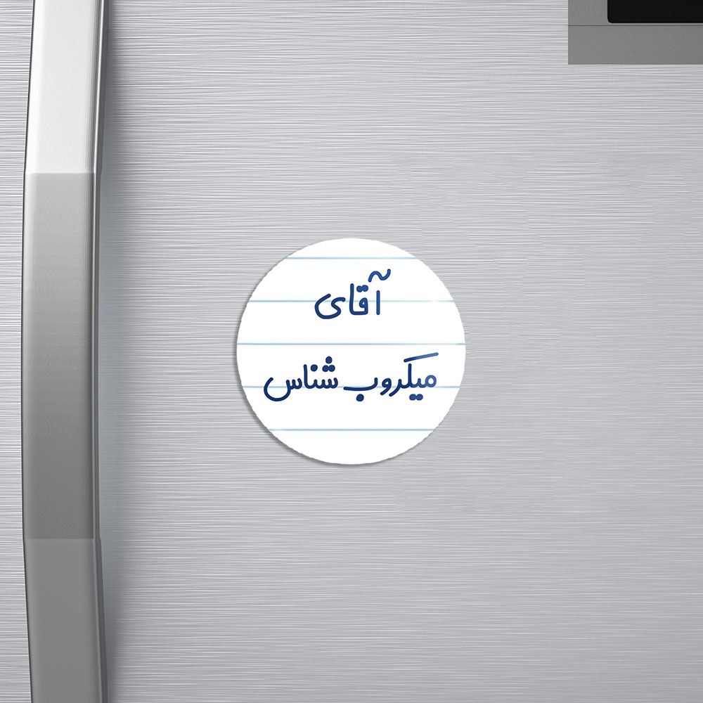 مگنت آقای میکروب شناس خندالو با روکش سلفون مات مخملی ضدخش و قطعه پشتی فلزی تولید شده است که آهنربای اتمی بکار برده شده در محصول، بصورت مخفی تعبیه شده ودیده نمی شود. ضمن اینکه گیرایی بسیار بالایی داشته و به هیچ عنوان از روی یخچال نمی افتد.