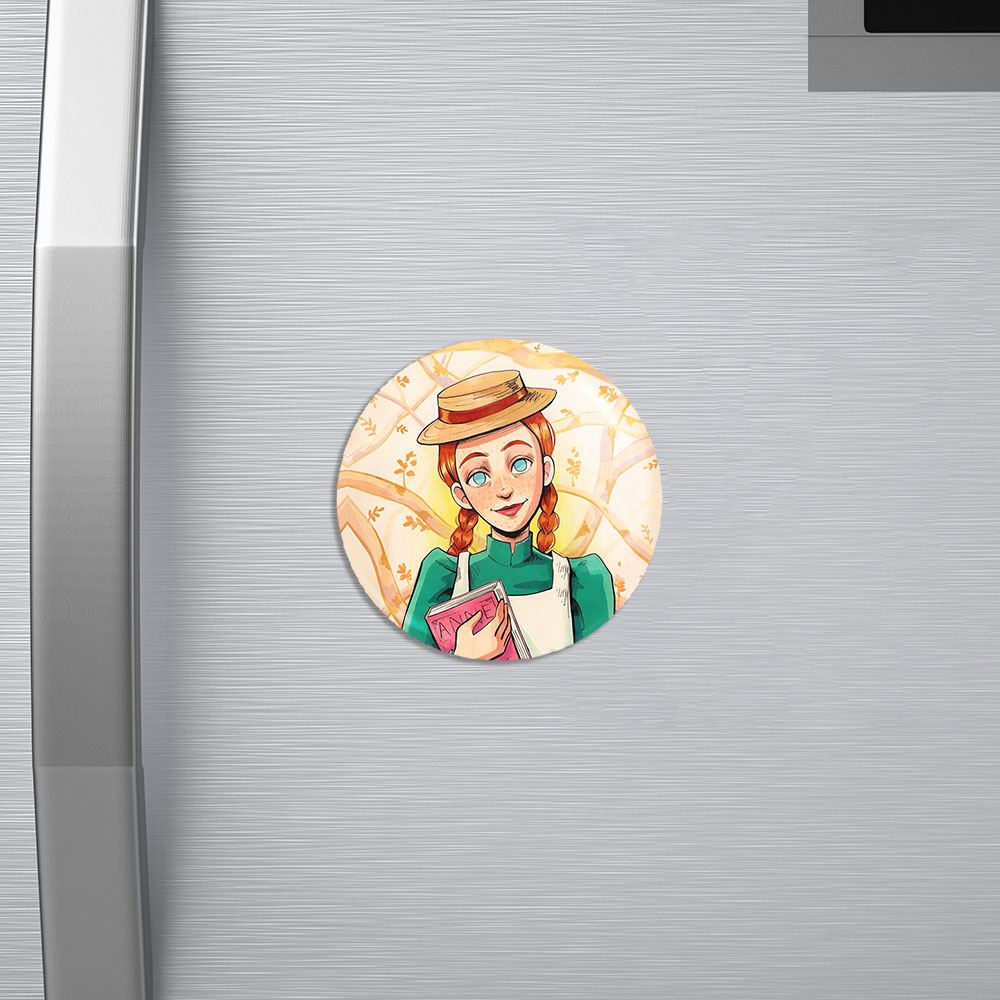 مگنت آن شرلی خندالو با روکش سلفون مات مخملی ضدخش و قطعه پشتی فلزی تولید شده است که آهنربای اتمی بکار برده شده در محصول، بصورت مخفی تعبیه شده ودیده نمی شود. ضمن اینکه گیرایی بسیار بالایی داشته و به هیچ عنوان از روی یخچال نمی افتد.