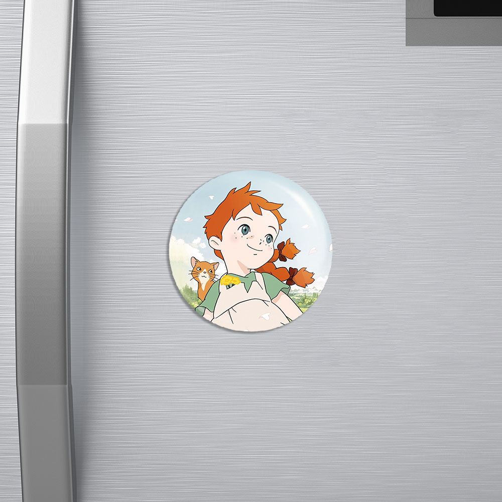 مگنت آن شرلی خندالو با روکش سلفون مات مخملی ضدخش و قطعه پشتی فلزی تولید شده است که آهنربای اتمی بکار برده شده در محصول، بصورت مخفی تعبیه شده ودیده نمی شود. ضمن اینکه گیرایی بسیار بالایی داشته و به هیچ عنوان از روی یخچال نمی افتد.