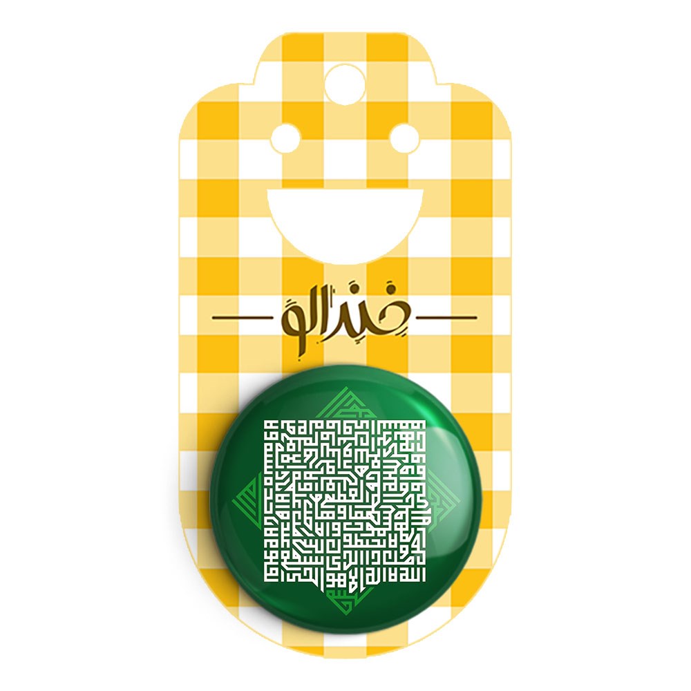 مگنت آیه الکرسی خندالو با روکش سلفون مات مخملی ضدخش و قطعه پشتی فلزی تولید شده است که آهنربای اتمی بکار برده شده در محصول، بصورت مخفی تعبیه شده ودیده نمی شود. ضمن اینکه گیرایی بسیار بالایی داشته و به هیچ عنوان از روی یخچال نمی افتد.