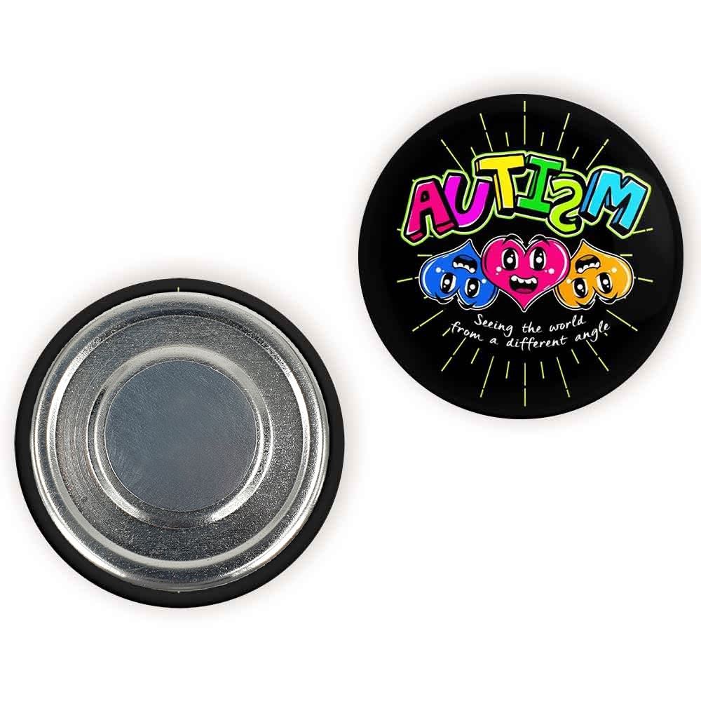 مگنت اتیسم Autism خندالو با روکش سلفون مات مخملی ضدخش و قطعه پشتی فلزی تولید شده است که آهنربای اتمی بکار برده شده در محصول، بصورت مخفی تعبیه شده ودیده نمی شود. ضمن اینکه گیرایی بسیار بالایی داشته و به هیچ عنوان از روی یخچال نمی افتد.