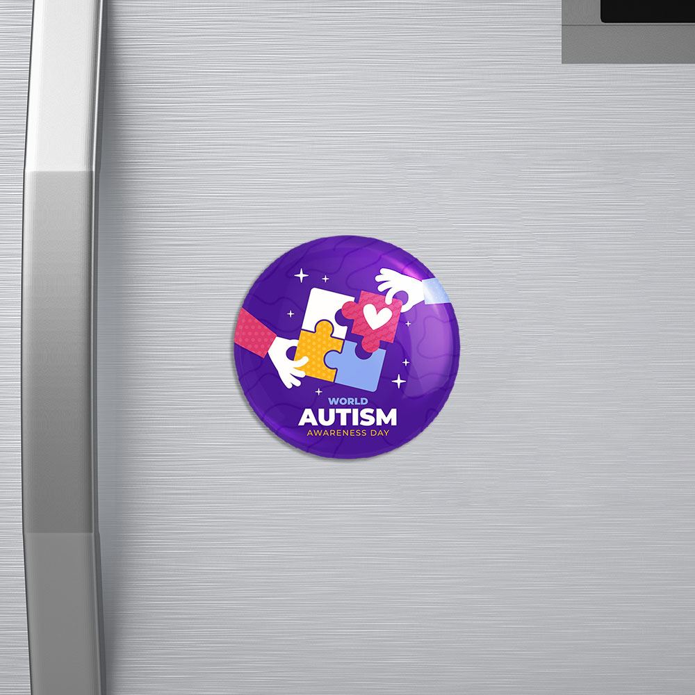 مگنت اتیسم Autism خندالو با روکش سلفون مات مخملی ضدخش و قطعه پشتی فلزی تولید شده است که آهنربای اتمی بکار برده شده در محصول، بصورت مخفی تعبیه شده ودیده نمی شود. ضمن اینکه گیرایی بسیار بالایی داشته و به هیچ عنوان از روی یخچال نمی افتد.