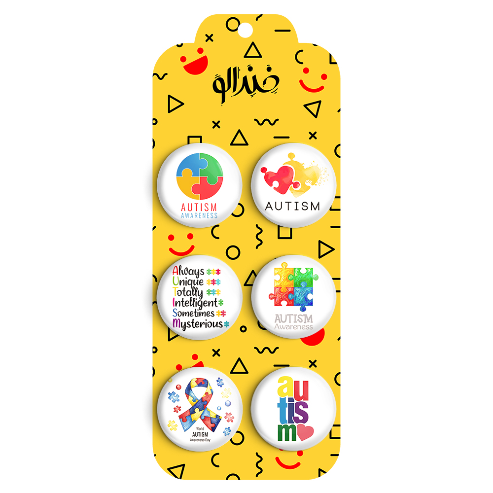 پک 6 عددی مگنت یخچال خندالو طرح اتیسم (Autism) با روکش سلفون مات حرارتی مخملی ضدخش و قطعه پشتی فلزی تولید شده است که آهنربای اتمی بکار برده شده در محصول، بصورت مخفی تعبیه شده ودیده نمی شود. ضمن اینکه گیرایی بسیار بالایی داشته و به هیچ عنوان از روی یخچال نمی افتد. نکته مهم این است که به دلیل مخفی بودن آهنربا، هیچگونه خط و خش و زدگی بر روی یخچال ایجاد نخواهد شد.