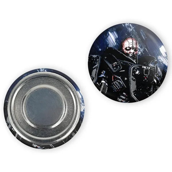 مگنت ادام اسمشر سایبر پانک  خندالو با روکش سلفون مات مخملی ضدخش و قطعه پشتی فلزی تولید شده است که آهنربای اتمی بکار برده شده در محصول، بصورت مخفی تعبیه شده ودیده نمی شود. ضمن اینکه گیرایی بسیار بالایی داشته و به هیچ عنوان از روی یخچال نمی افتد.