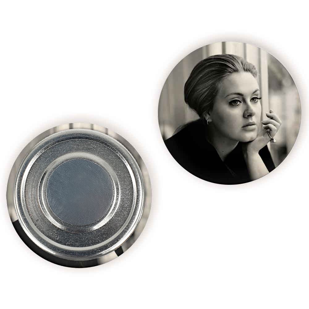 مگنت ادل Adele خندالو با روکش سلفون مات مخملی ضدخش و قطعه پشتی فلزی تولید شده است که آهنربای اتمی بکار برده شده در محصول، بصورت مخفی تعبیه شده ودیده نمی شود. ضمن اینکه گیرایی بسیار بالایی داشته و به هیچ عنوان از روی یخچال نمی افتد.