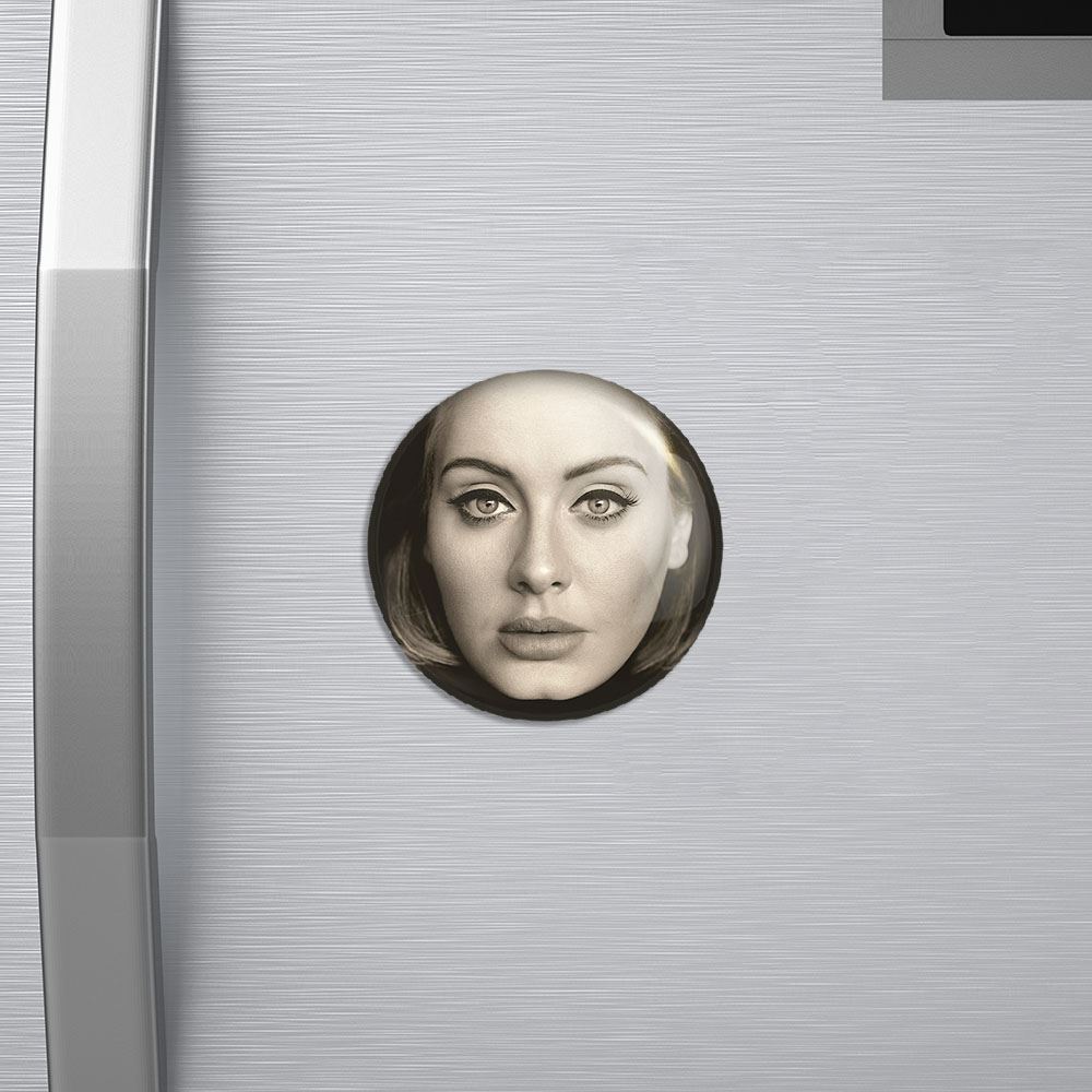 مگنت ادل Adele خندالو با روکش سلفون مات مخملی ضدخش و قطعه پشتی فلزی تولید شده است که آهنربای اتمی بکار برده شده در محصول، بصورت مخفی تعبیه شده ودیده نمی شود. ضمن اینکه گیرایی بسیار بالایی داشته و به هیچ عنوان از روی یخچال نمی افتد.