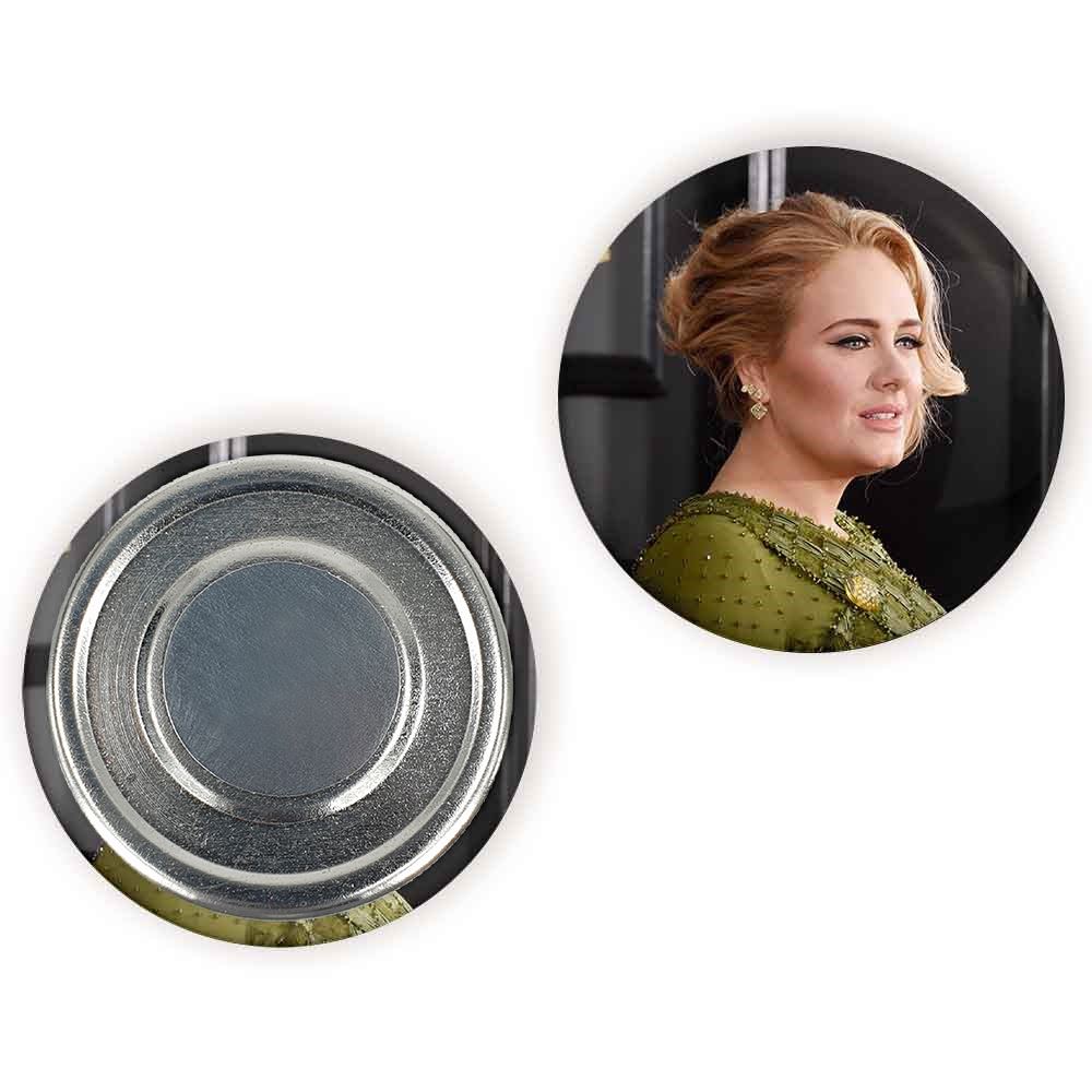 مگنت ادل Adele خندالو با روکش سلفون مات مخملی ضدخش و قطعه پشتی فلزی تولید شده است که آهنربای اتمی بکار برده شده در محصول، بصورت مخفی تعبیه شده ودیده نمی شود. ضمن اینکه گیرایی بسیار بالایی داشته و به هیچ عنوان از روی یخچال نمی افتد.