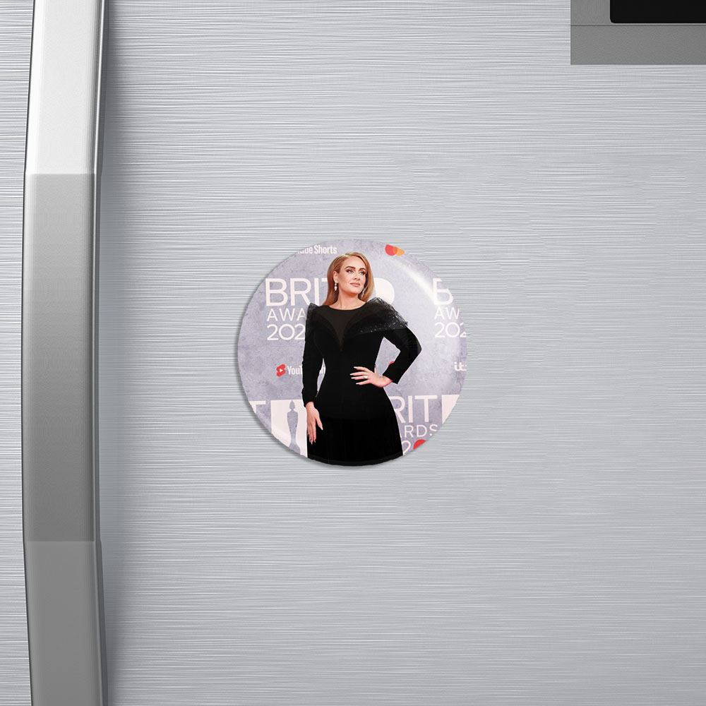 مگنت ادل Adele خندالو با روکش سلفون مات مخملی ضدخش و قطعه پشتی فلزی تولید شده است که آهنربای اتمی بکار برده شده در محصول، بصورت مخفی تعبیه شده ودیده نمی شود. ضمن اینکه گیرایی بسیار بالایی داشته و به هیچ عنوان از روی یخچال نمی افتد.