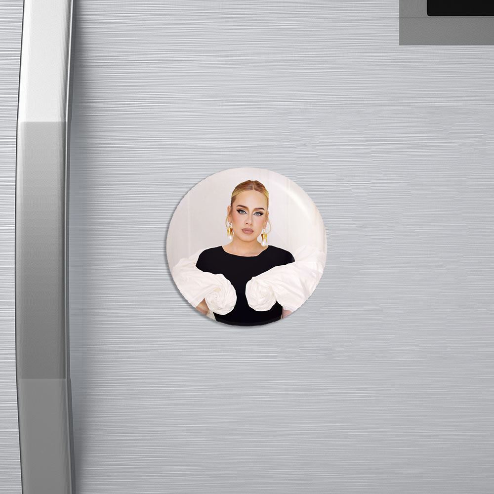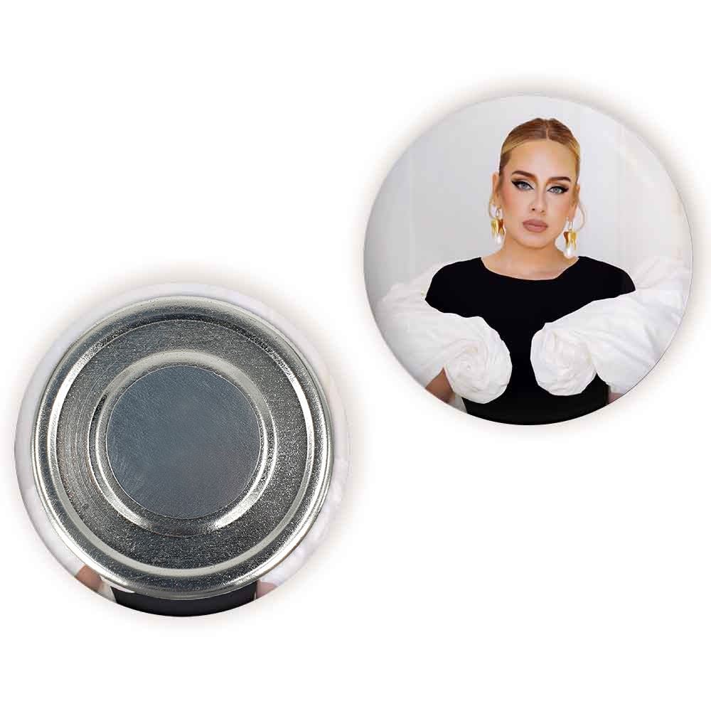 مگنت ادل Adele خندالو با روکش سلفون مات مخملی ضدخش و قطعه پشتی فلزی تولید شده است که آهنربای اتمی بکار برده شده در محصول، بصورت مخفی تعبیه شده ودیده نمی شود. ضمن اینکه گیرایی بسیار بالایی داشته و به هیچ عنوان از روی یخچال نمی افتد.