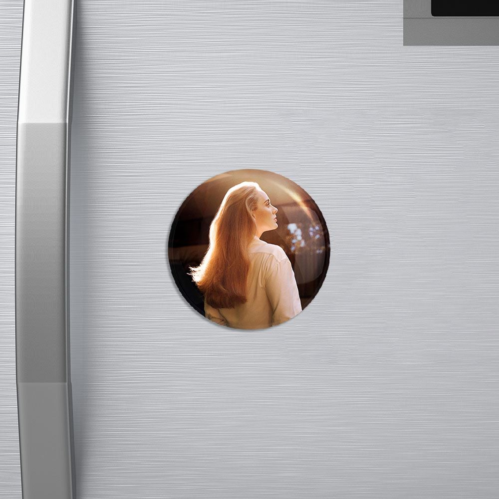 مگنت ادل Adele خندالو با روکش سلفون مات مخملی ضدخش و قطعه پشتی فلزی تولید شده است که آهنربای اتمی بکار برده شده در محصول، بصورت مخفی تعبیه شده ودیده نمی شود. ضمن اینکه گیرایی بسیار بالایی داشته و به هیچ عنوان از روی یخچال نمی افتد.