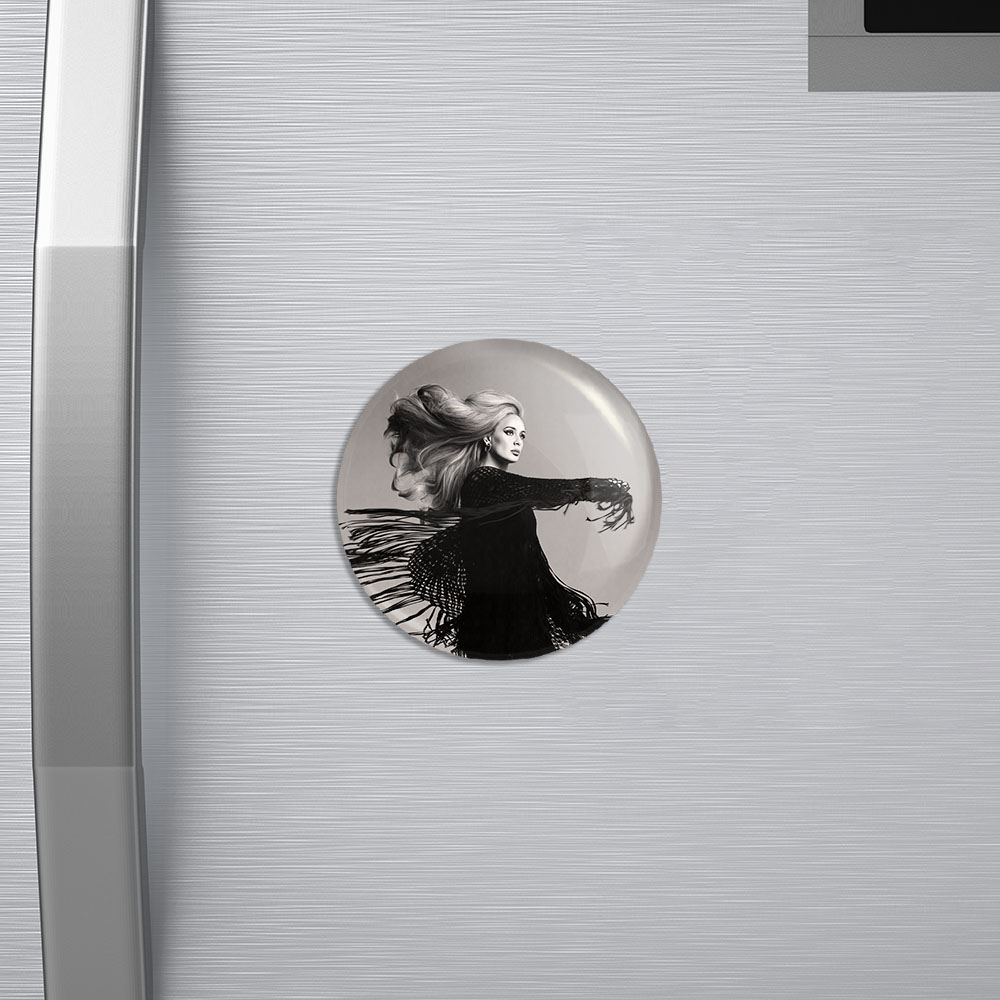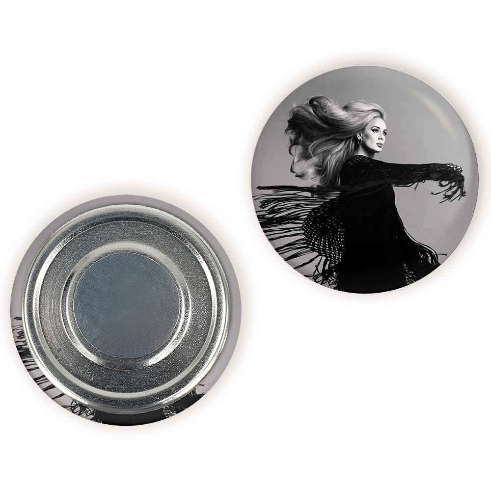 مگنت ادل Adele خندالو با روکش سلفون مات مخملی ضدخش و قطعه پشتی فلزی تولید شده است که آهنربای اتمی بکار برده شده در محصول، بصورت مخفی تعبیه شده ودیده نمی شود. ضمن اینکه گیرایی بسیار بالایی داشته و به هیچ عنوان از روی یخچال نمی افتد.