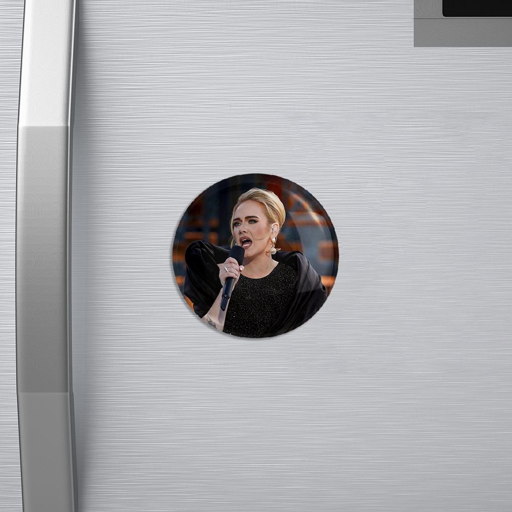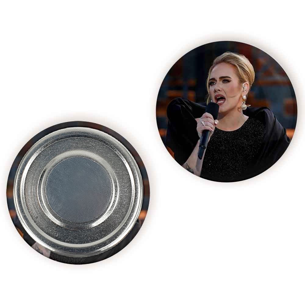 مگنت ادل Adele خندالو با روکش سلفون مات مخملی ضدخش و قطعه پشتی فلزی تولید شده است که آهنربای اتمی بکار برده شده در محصول، بصورت مخفی تعبیه شده ودیده نمی شود. ضمن اینکه گیرایی بسیار بالایی داشته و به هیچ عنوان از روی یخچال نمی افتد.