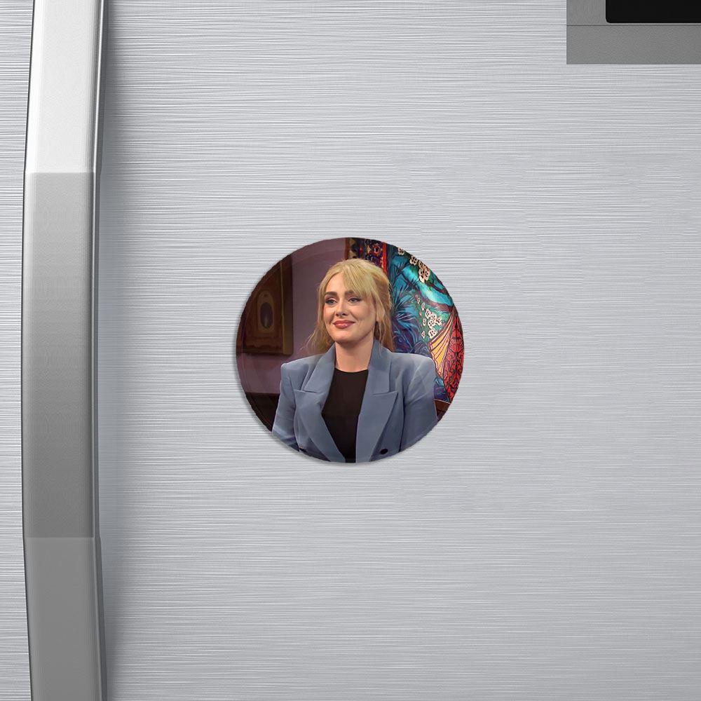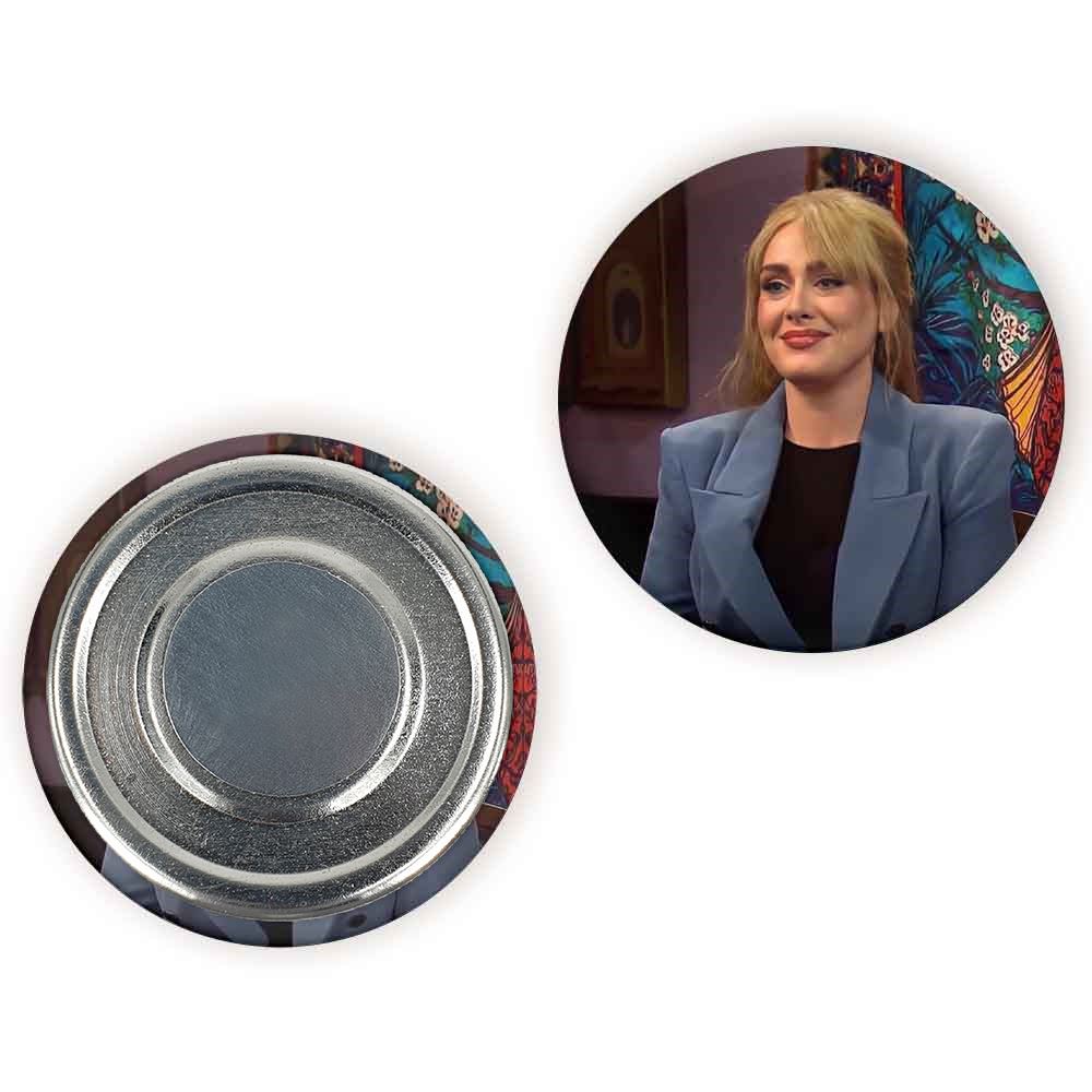 مگنت ادل Adele خندالو با روکش سلفون مات مخملی ضدخش و قطعه پشتی فلزی تولید شده است که آهنربای اتمی بکار برده شده در محصول، بصورت مخفی تعبیه شده ودیده نمی شود. ضمن اینکه گیرایی بسیار بالایی داشته و به هیچ عنوان از روی یخچال نمی افتد.