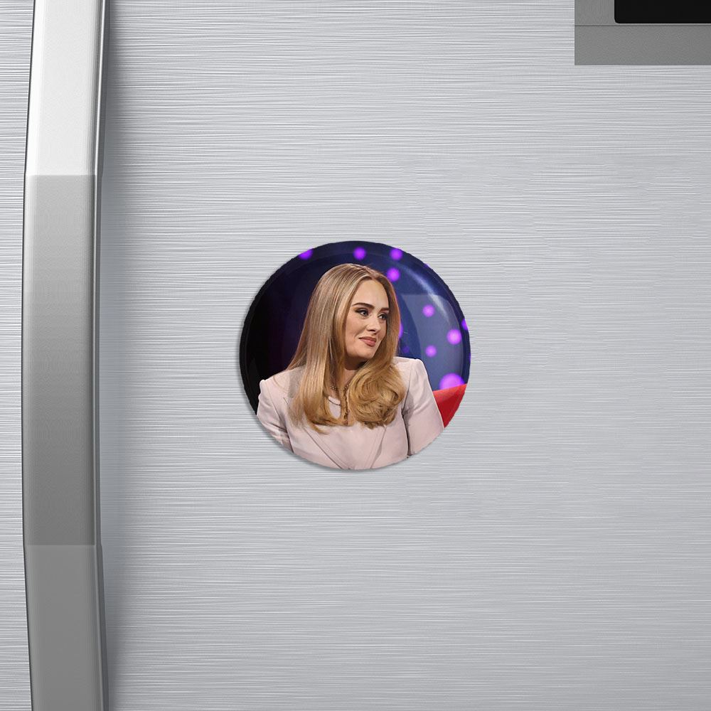 مگنت ادل Adele خندالو با روکش سلفون مات مخملی ضدخش و قطعه پشتی فلزی تولید شده است که آهنربای اتمی بکار برده شده در محصول، بصورت مخفی تعبیه شده ودیده نمی شود. ضمن اینکه گیرایی بسیار بالایی داشته و به هیچ عنوان از روی یخچال نمی افتد.