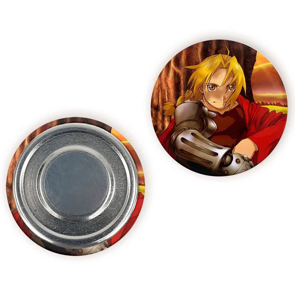 مگنت ادوارد الریک انیمه کیمیاگر تمام فلزی خندالو با روکش سلفون مات مخملی ضدخش و قطعه پشتی فلزی تولید شده است که آهنربای اتمی بکار برده شده در محصول، بصورت مخفی تعبیه شده ودیده نمی شود. ضمن اینکه گیرایی بسیار بالایی داشته و به هیچ عنوان از روی یخچال نمی افتد.