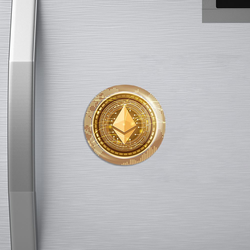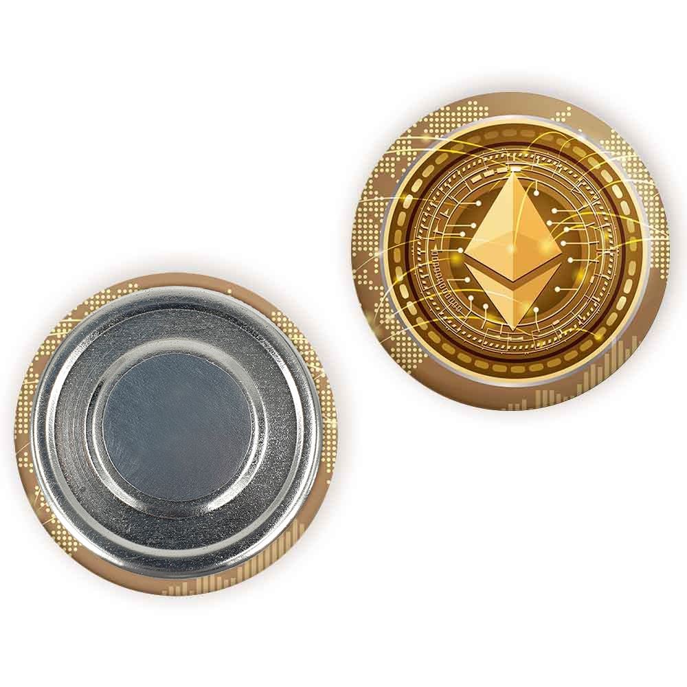 مگنت ارز دیجیتال اتریوم خندالو با روکش سلفون مات مخملی ضدخش و قطعه پشتی فلزی تولید شده است که آهنربای اتمی بکار برده شده در محصول، بصورت مخفی تعبیه شده ودیده نمی شود. ضمن اینکه گیرایی بسیار بالایی داشته و به هیچ عنوان از روی یخچال نمی افتد.
