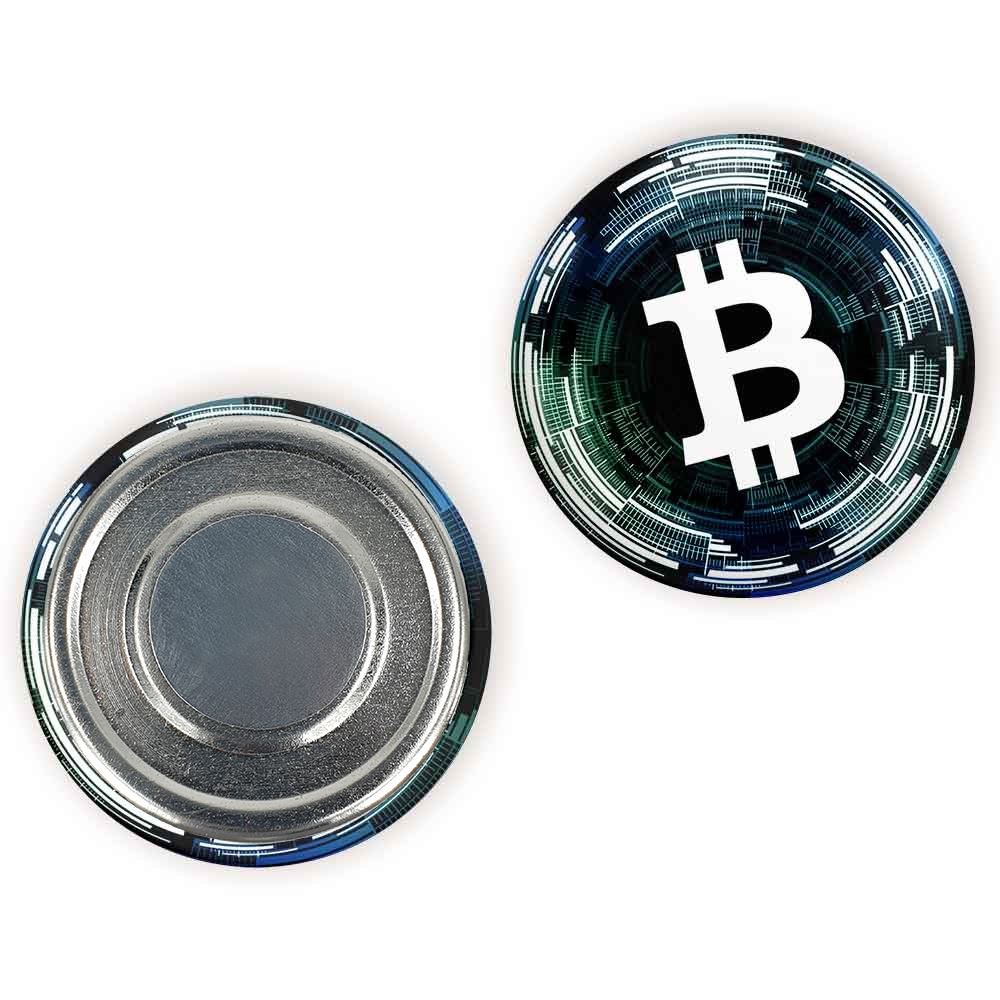 مگنت ارز دیجیتال بیت کوین خندالو با روکش سلفون مات مخملی ضدخش و قطعه پشتی فلزی تولید شده است که آهنربای اتمی بکار برده شده در محصول، بصورت مخفی تعبیه شده ودیده نمی شود. ضمن اینکه گیرایی بسیار بالایی داشته و به هیچ عنوان از روی یخچال نمی افتد.