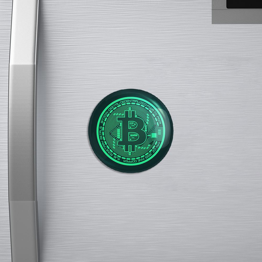 مگنت ارز دیجیتال بیت کوین خندالو با روکش سلفون مات مخملی ضدخش و قطعه پشتی فلزی تولید شده است که آهنربای اتمی بکار برده شده در محصول، بصورت مخفی تعبیه شده ودیده نمی شود. ضمن اینکه گیرایی بسیار بالایی داشته و به هیچ عنوان از روی یخچال نمی افتد.