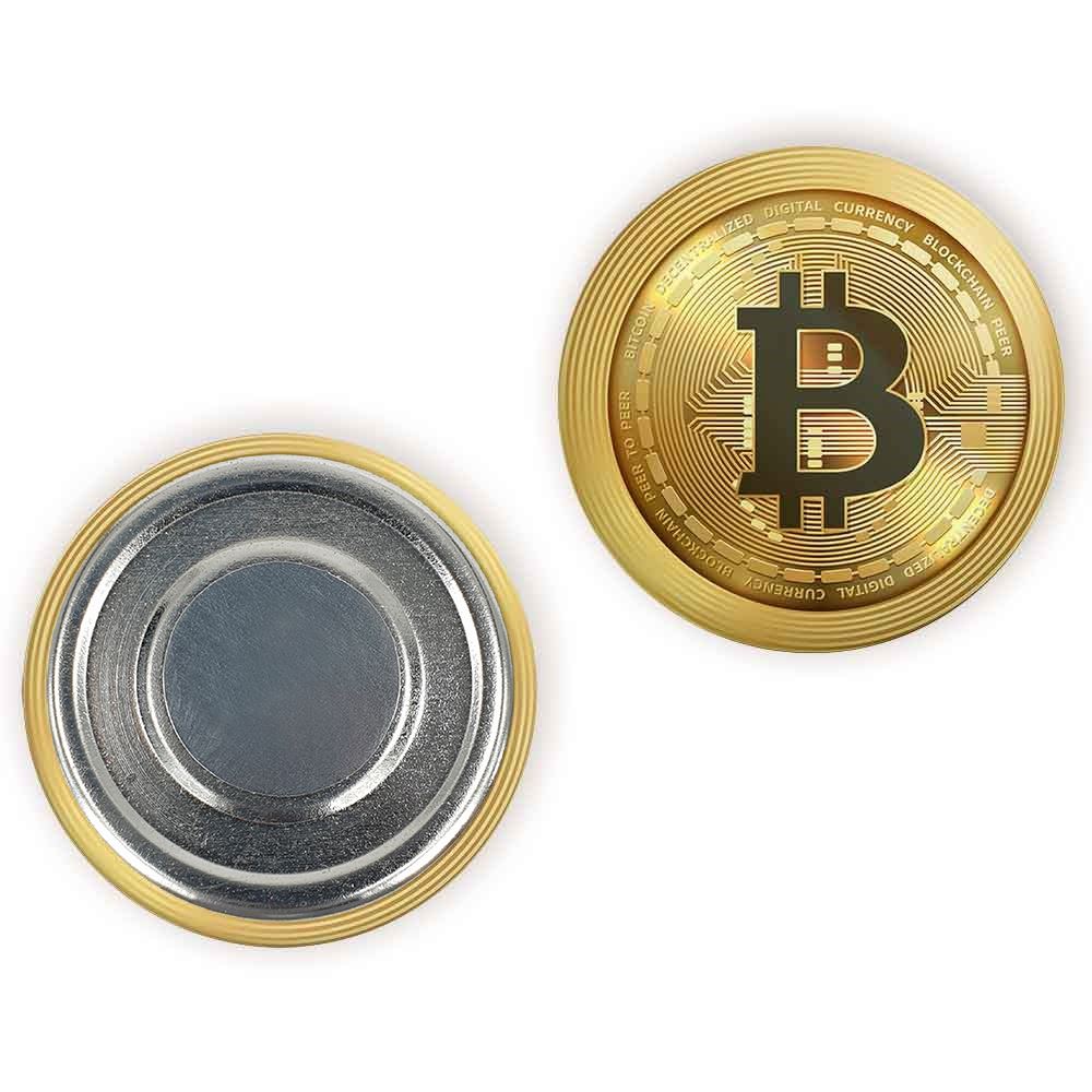 مگنت ارز دیجیتال بیت کوین خندالو با روکش سلفون مات مخملی ضدخش و قطعه پشتی فلزی تولید شده است که آهنربای اتمی بکار برده شده در محصول، بصورت مخفی تعبیه شده ودیده نمی شود. ضمن اینکه گیرایی بسیار بالایی داشته و به هیچ عنوان از روی یخچال نمی افتد.
