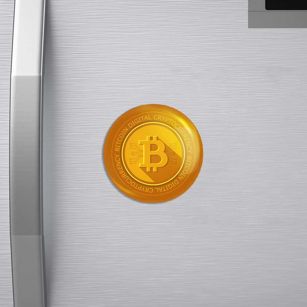مگنت ارز دیجیتال بیت کوین خندالو با روکش سلفون مات مخملی ضدخش و قطعه پشتی فلزی تولید شده است که آهنربای اتمی بکار برده شده در محصول، بصورت مخفی تعبیه شده ودیده نمی شود. ضمن اینکه گیرایی بسیار بالایی داشته و به هیچ عنوان از روی یخچال نمی افتد.