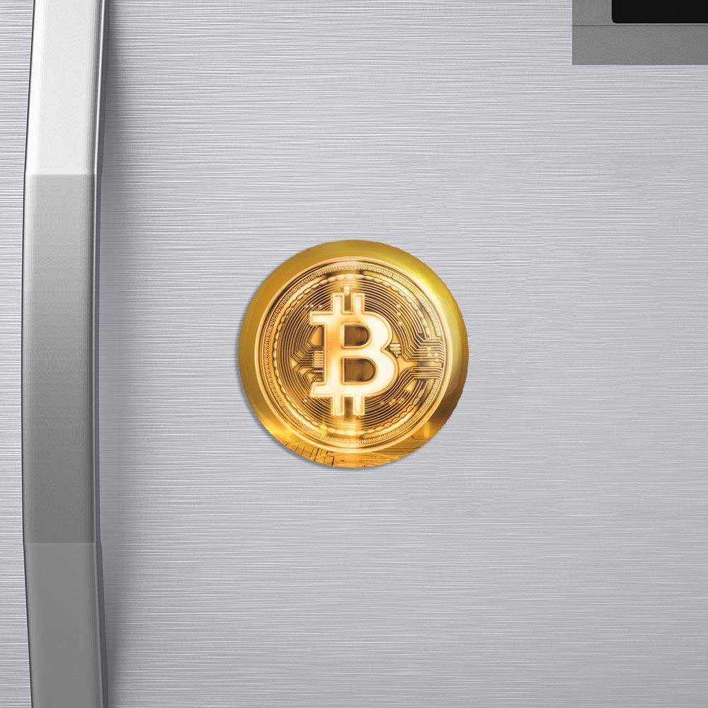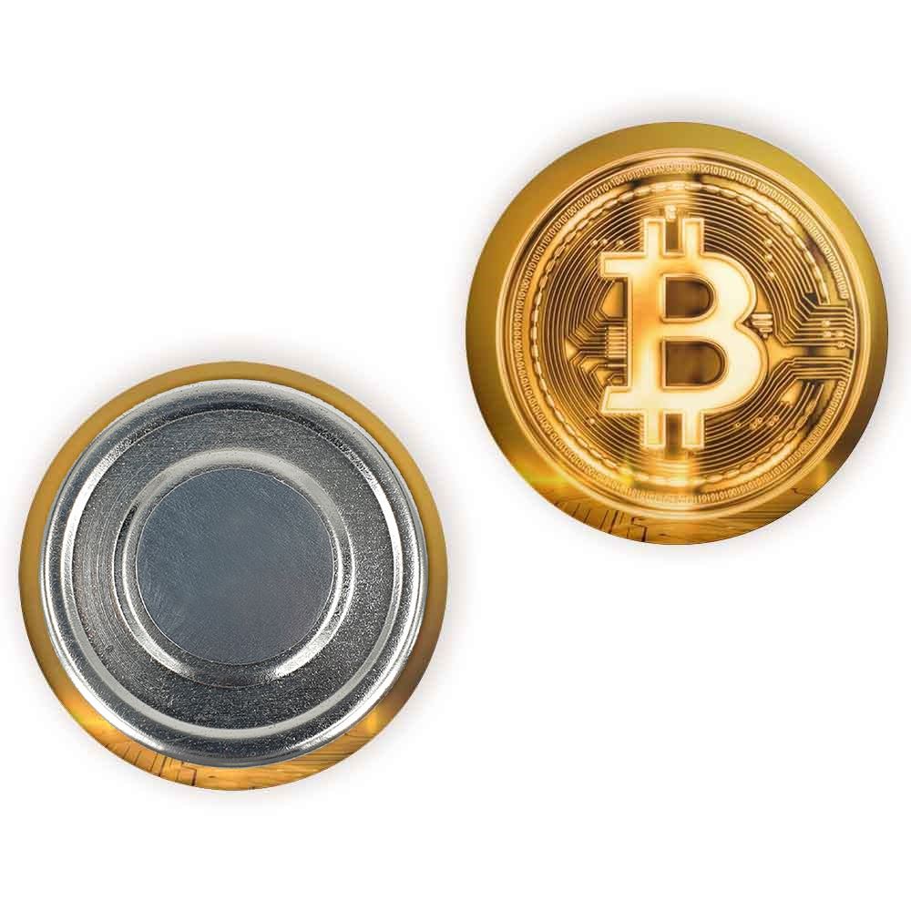 مگنت ارز دیجیتال بیت کوین خندالو با روکش سلفون مات مخملی ضدخش و قطعه پشتی فلزی تولید شده است که آهنربای اتمی بکار برده شده در محصول، بصورت مخفی تعبیه شده ودیده نمی شود. ضمن اینکه گیرایی بسیار بالایی داشته و به هیچ عنوان از روی یخچال نمی افتد.