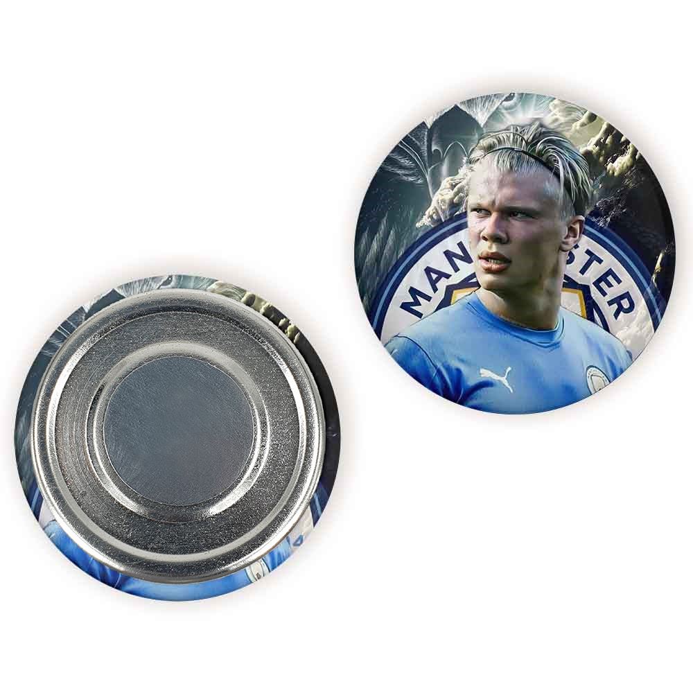 مگنت ارلینگ هالند Erling Haaland خندالو با روکش سلفون مات مخملی ضدخش و قطعه پشتی فلزی تولید شده است که آهنربای اتمی بکار برده شده در محصول، بصورت مخفی تعبیه شده ودیده نمی شود. ضمن اینکه گیرایی بسیار بالایی داشته و به هیچ عنوان از روی یخچال نمی افتد.