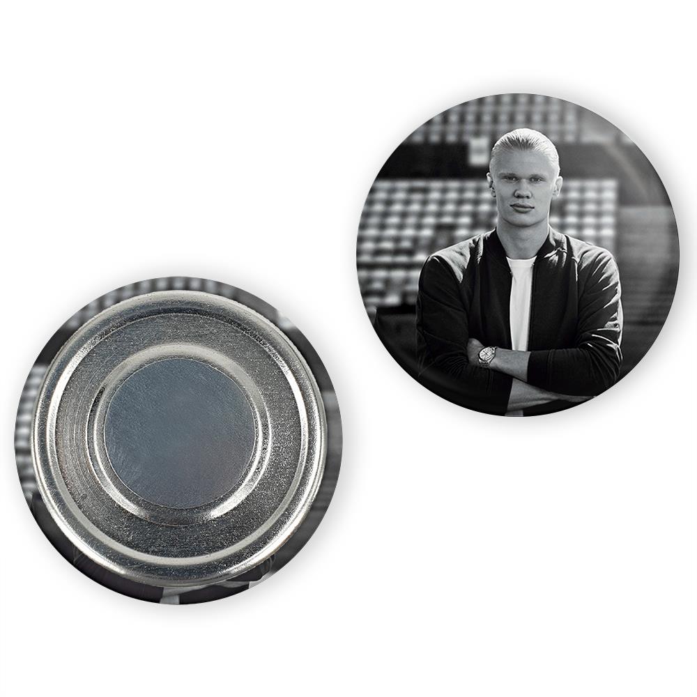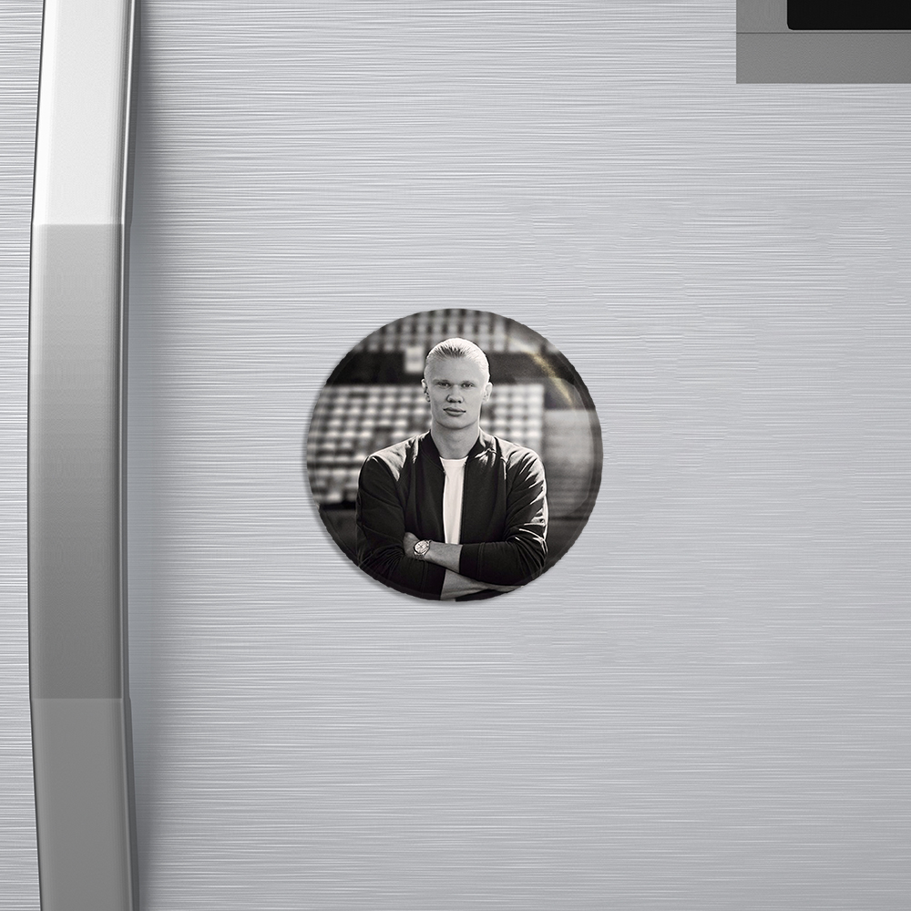 مگنت ارلینگ هالند (Erling Haaland) خندالو با روکش سلفون مات مخملی ضدخش و قطعه پشتی فلزی تولید شده است که آهنربای اتمی بکار برده شده در محصول، بصورت مخفی تعبیه شده ودیده نمی شود. ضمن اینکه گیرایی بسیار بالایی داشته و به هیچ عنوان از روی یخچال نمی افتد.