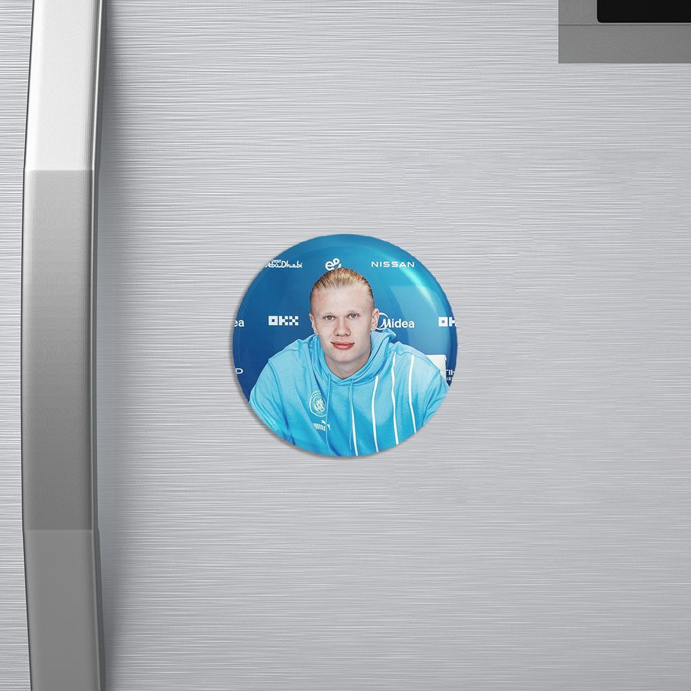 مگنت ارلینگ هالند Erling Haaland خندالو با روکش سلفون مات مخملی ضدخش و قطعه پشتی فلزی تولید شده است که آهنربای اتمی بکار برده شده در محصول، بصورت مخفی تعبیه شده ودیده نمی شود. ضمن اینکه گیرایی بسیار بالایی داشته و به هیچ عنوان از روی یخچال نمی افتد.