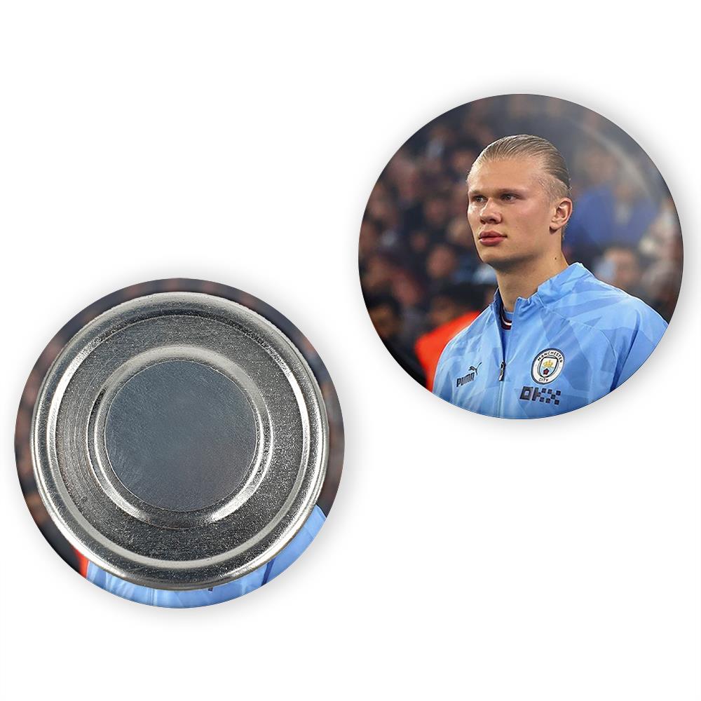 مگنت ارلینگ هالند (Erling Haaland) خندالو با روکش سلفون مات مخملی ضدخش و قطعه پشتی فلزی تولید شده است که آهنربای اتمی بکار برده شده در محصول، بصورت مخفی تعبیه شده ودیده نمی شود. ضمن اینکه گیرایی بسیار بالایی داشته و به هیچ عنوان از روی یخچال نمی افتد.