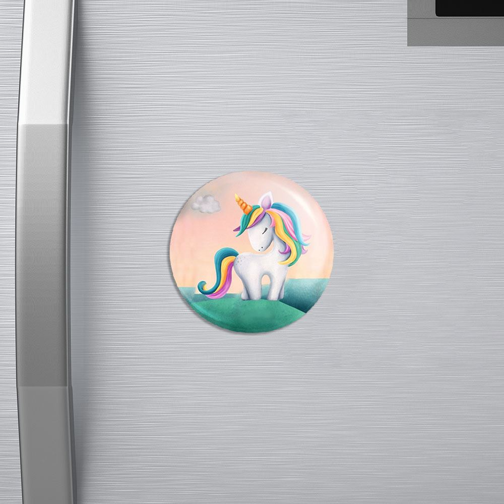 مگنت اسب تک شاخ پونی خندالو با روکش سلفون مات مخملی ضدخش و قطعه پشتی فلزی تولید شده است که آهنربای اتمی بکار برده شده در محصول، بصورت مخفی تعبیه شده ودیده نمی شود. ضمن اینکه گیرایی بسیار بالایی داشته و به هیچ عنوان از روی یخچال نمی افتد.