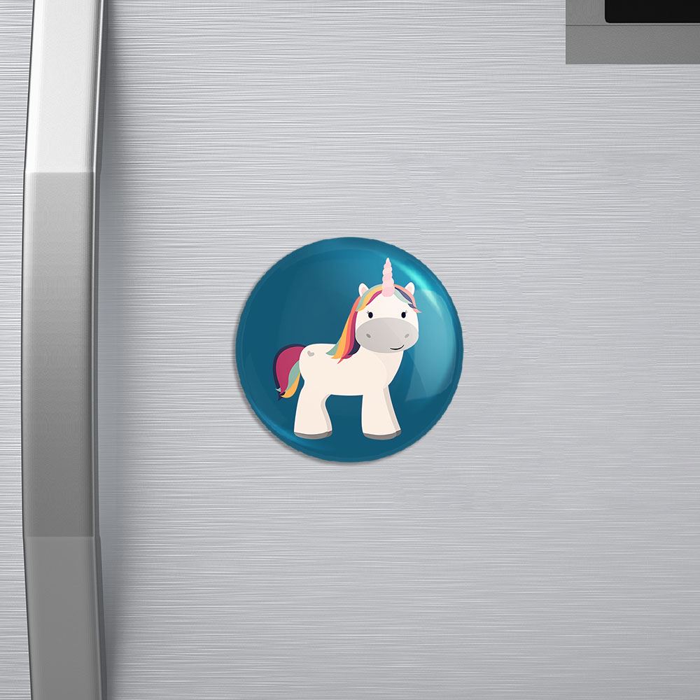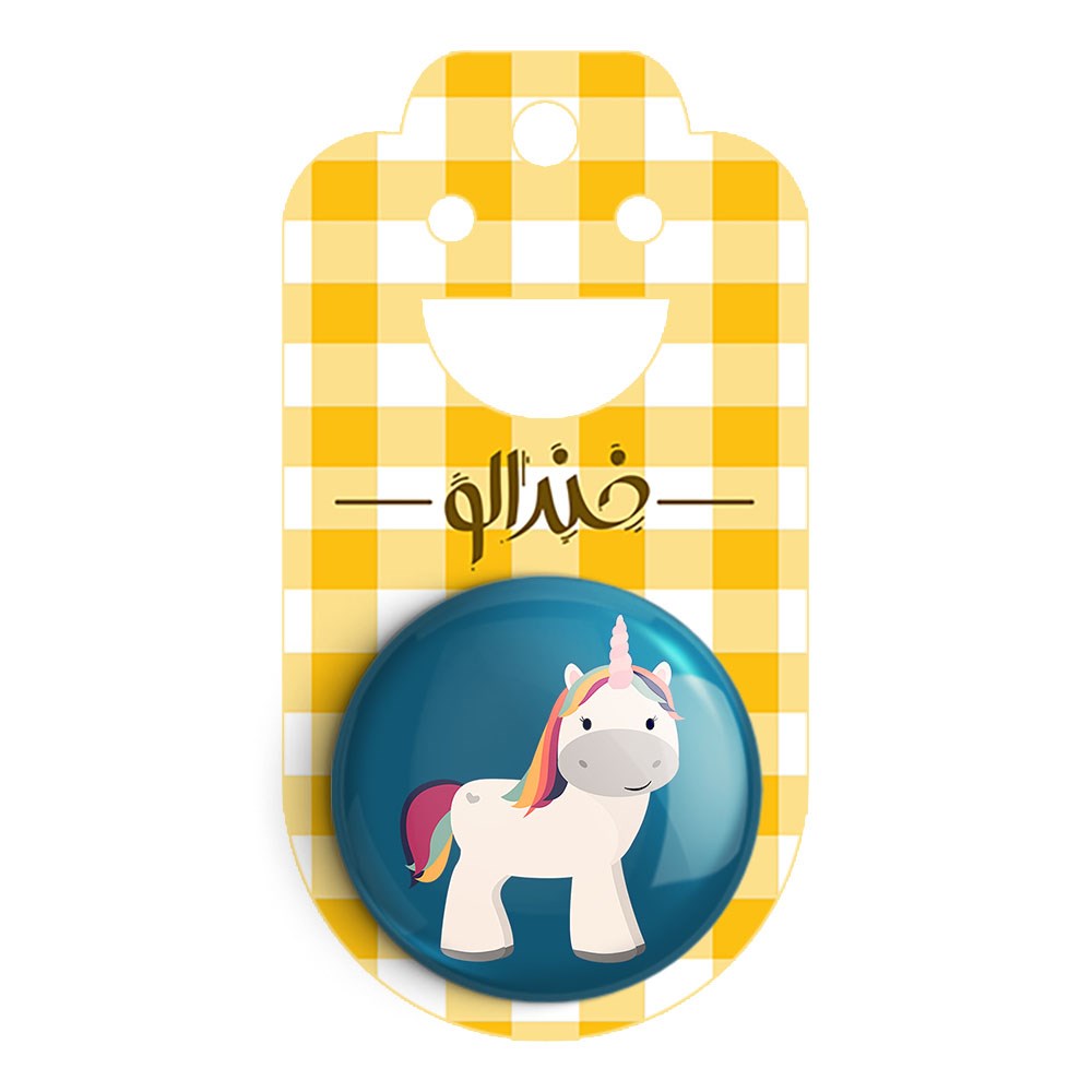 مگنت اسب تک شاخ یونیکورن خندالو با روکش سلفون مات مخملی ضدخش و قطعه پشتی فلزی تولید شده است که آهنربای اتمی بکار برده شده در محصول، بصورت مخفی تعبیه شده ودیده نمی شود. ضمن اینکه گیرایی بسیار بالایی داشته و به هیچ عنوان از روی یخچال نمی افتد.