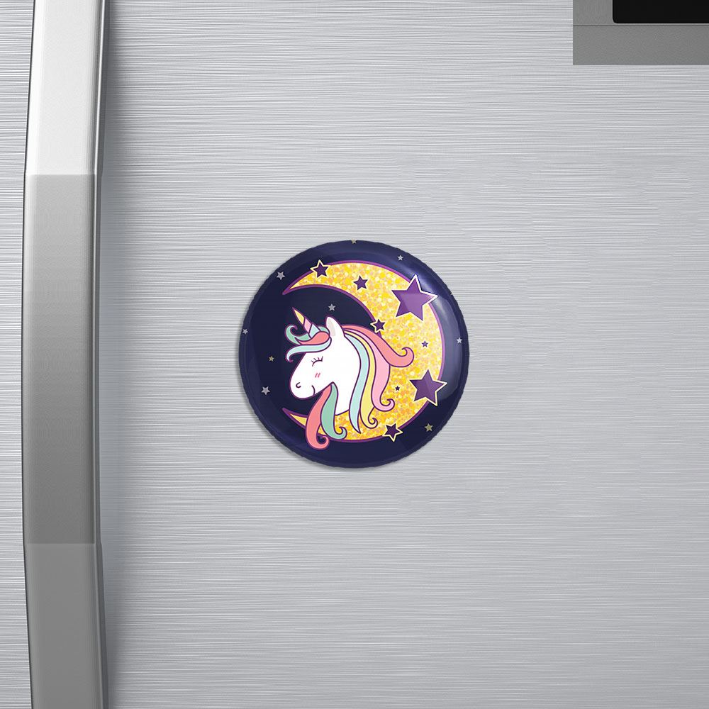 مگنت اسب تک شاخ یونیکورن خندالو با روکش سلفون مات مخملی ضدخش و قطعه پشتی فلزی تولید شده است که آهنربای اتمی بکار برده شده در محصول، بصورت مخفی تعبیه شده ودیده نمی شود. ضمن اینکه گیرایی بسیار بالایی داشته و به هیچ عنوان از روی یخچال نمی افتد.