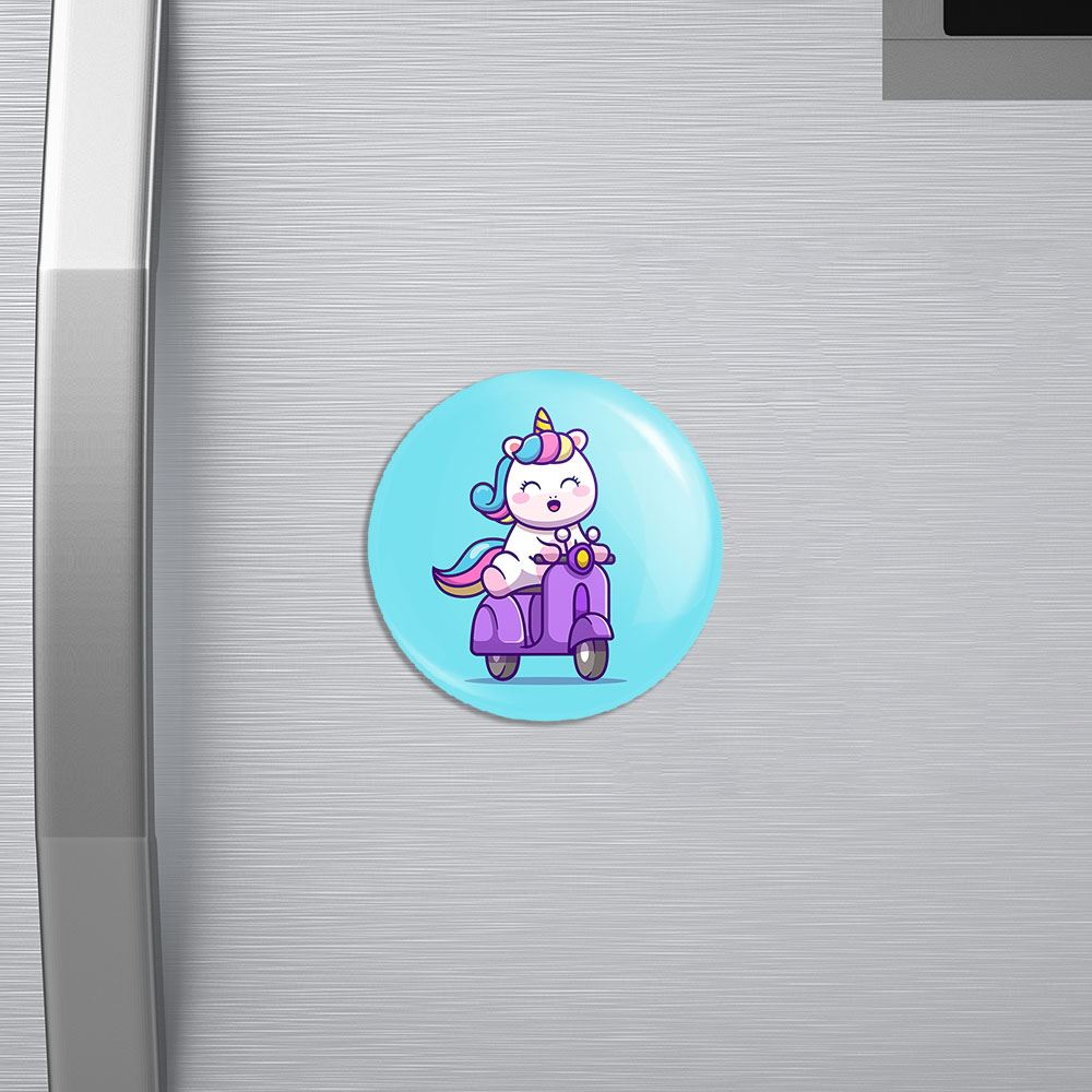 مگنت اسب تک شاخ یونیکورن خندالو با روکش سلفون مات مخملی ضدخش و قطعه پشتی فلزی تولید شده است که آهنربای اتمی بکار برده شده در محصول، بصورت مخفی تعبیه شده ودیده نمی شود. ضمن اینکه گیرایی بسیار بالایی داشته و به هیچ عنوان از روی یخچال نمی افتد.