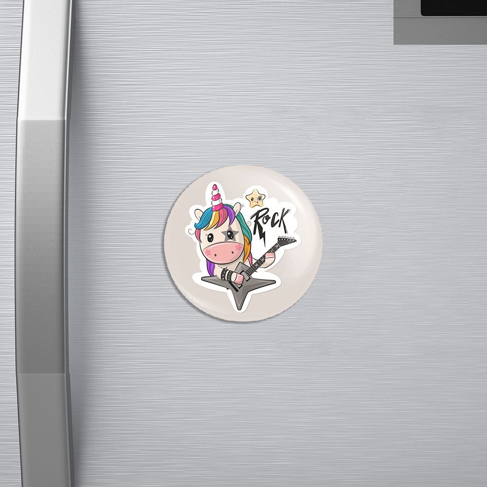 مگنت اسب تک شاخ یونیکورن خندالو با روکش سلفون مات مخملی ضدخش و قطعه پشتی فلزی تولید شده است که آهنربای اتمی بکار برده شده در محصول، بصورت مخفی تعبیه شده ودیده نمی شود. ضمن اینکه گیرایی بسیار بالایی داشته و به هیچ عنوان از روی یخچال نمی افتد.