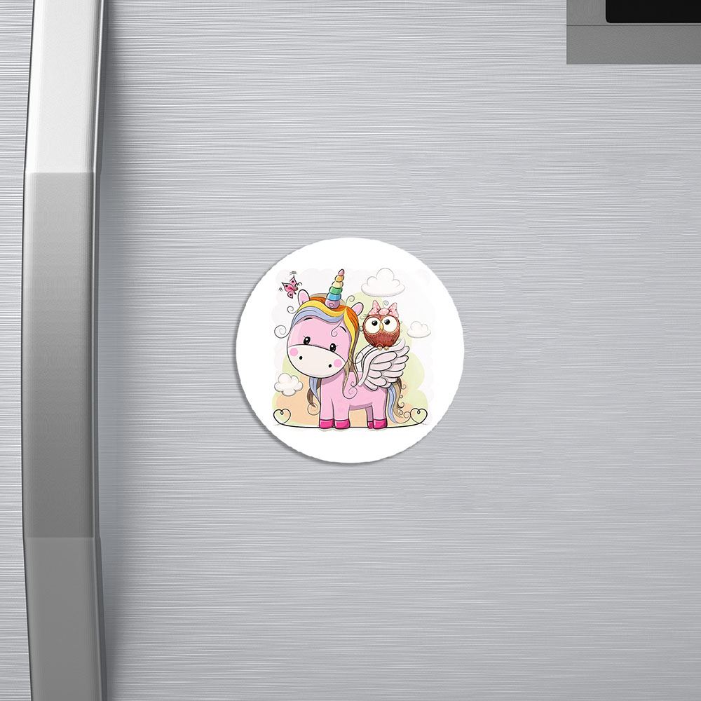 مگنت اسب تک شاخ یونیکورن خندالو با روکش سلفون مات مخملی ضدخش و قطعه پشتی فلزی تولید شده است که آهنربای اتمی بکار برده شده در محصول، بصورت مخفی تعبیه شده ودیده نمی شود. ضمن اینکه گیرایی بسیار بالایی داشته و به هیچ عنوان از روی یخچال نمی افتد.