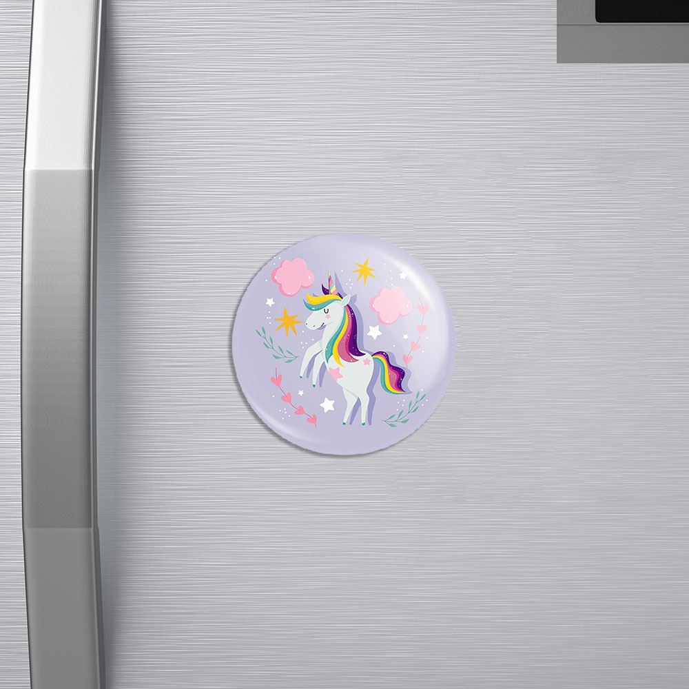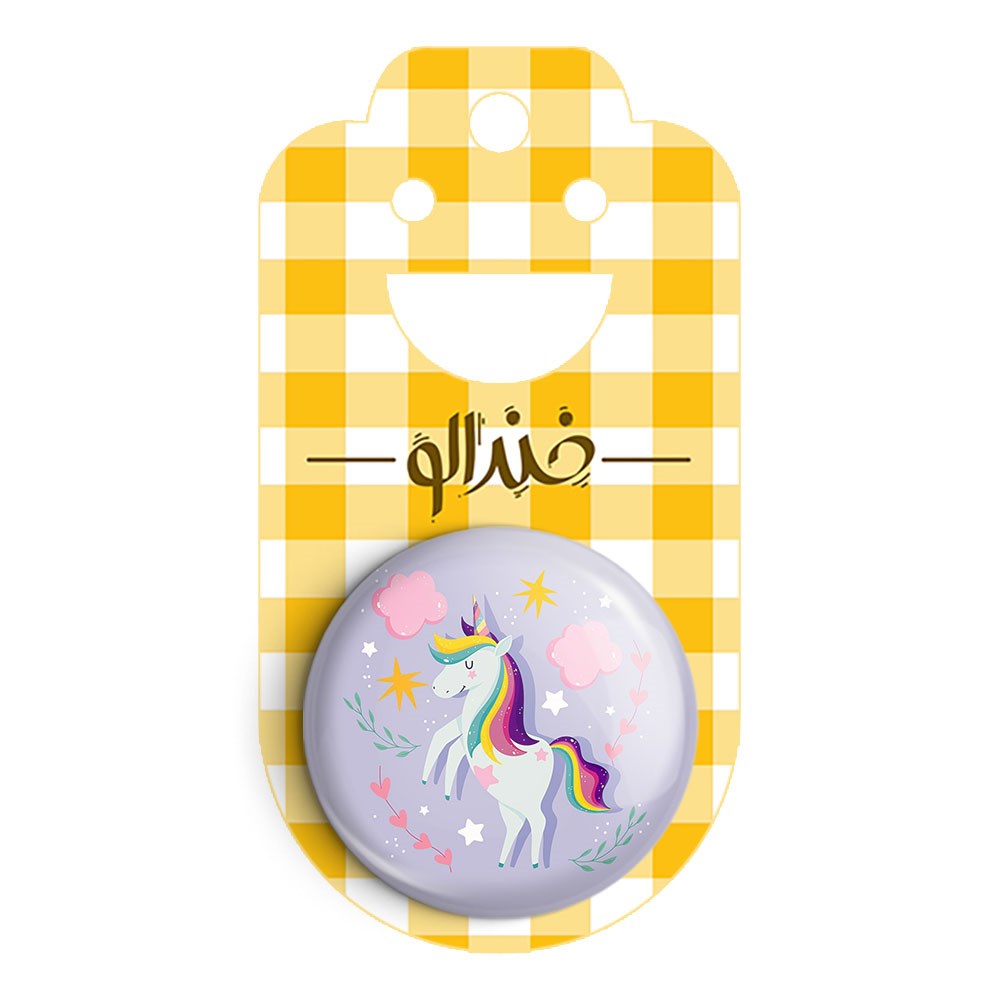 مگنت اسب تک شاخ خندالو با روکش سلفون مات مخملی ضدخش و قطعه پشتی فلزی تولید شده است که آهنربای اتمی بکار برده شده در محصول، بصورت مخفی تعبیه شده ودیده نمی شود. ضمن اینکه گیرایی بسیار بالایی داشته و به هیچ عنوان از روی یخچال نمی افتد.