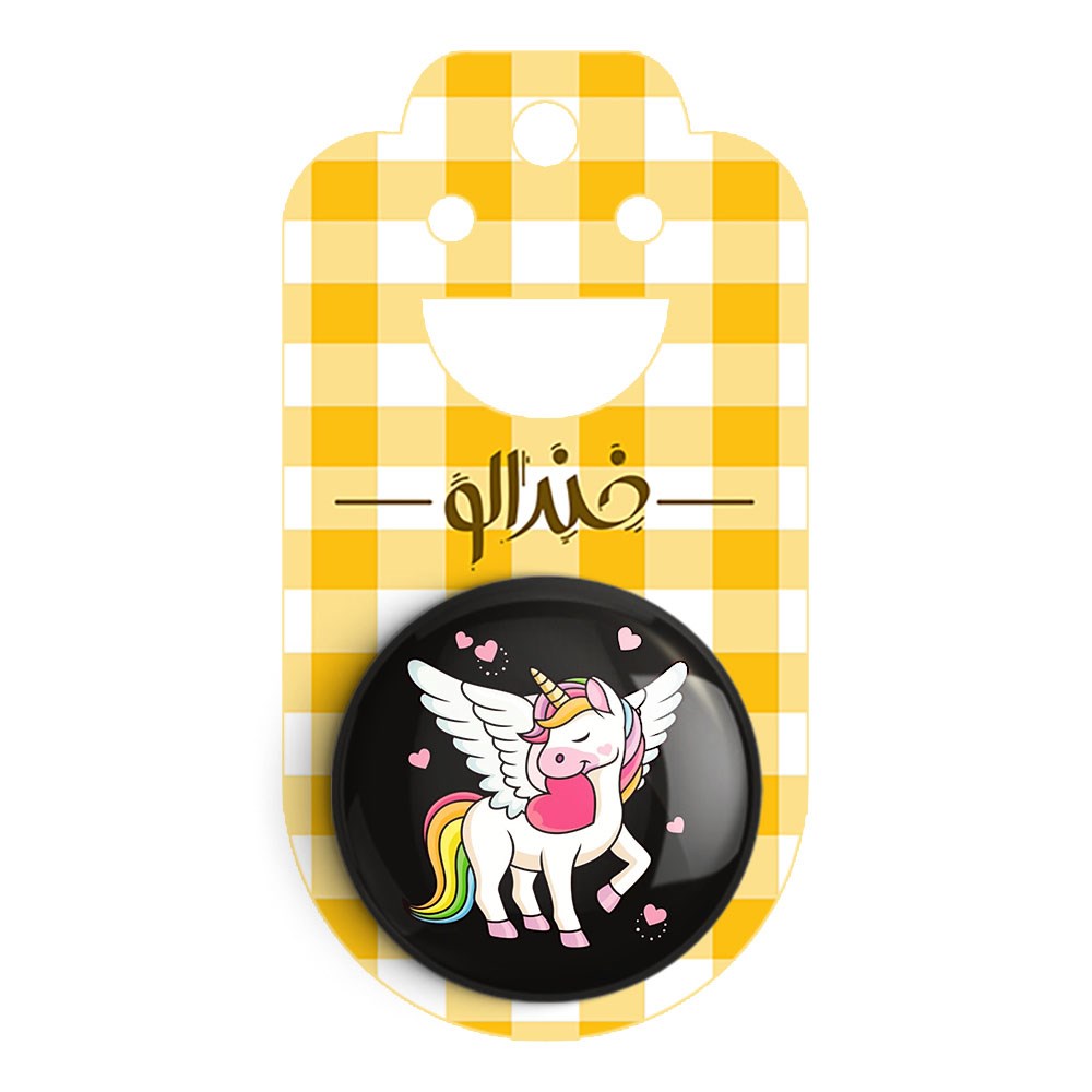 مگنت اسب تک شاخ خندالو با روکش سلفون مات مخملی ضدخش و قطعه پشتی فلزی تولید شده است که آهنربای اتمی بکار برده شده در محصول، بصورت مخفی تعبیه شده ودیده نمی شود. ضمن اینکه گیرایی بسیار بالایی داشته و به هیچ عنوان از روی یخچال نمی افتد.