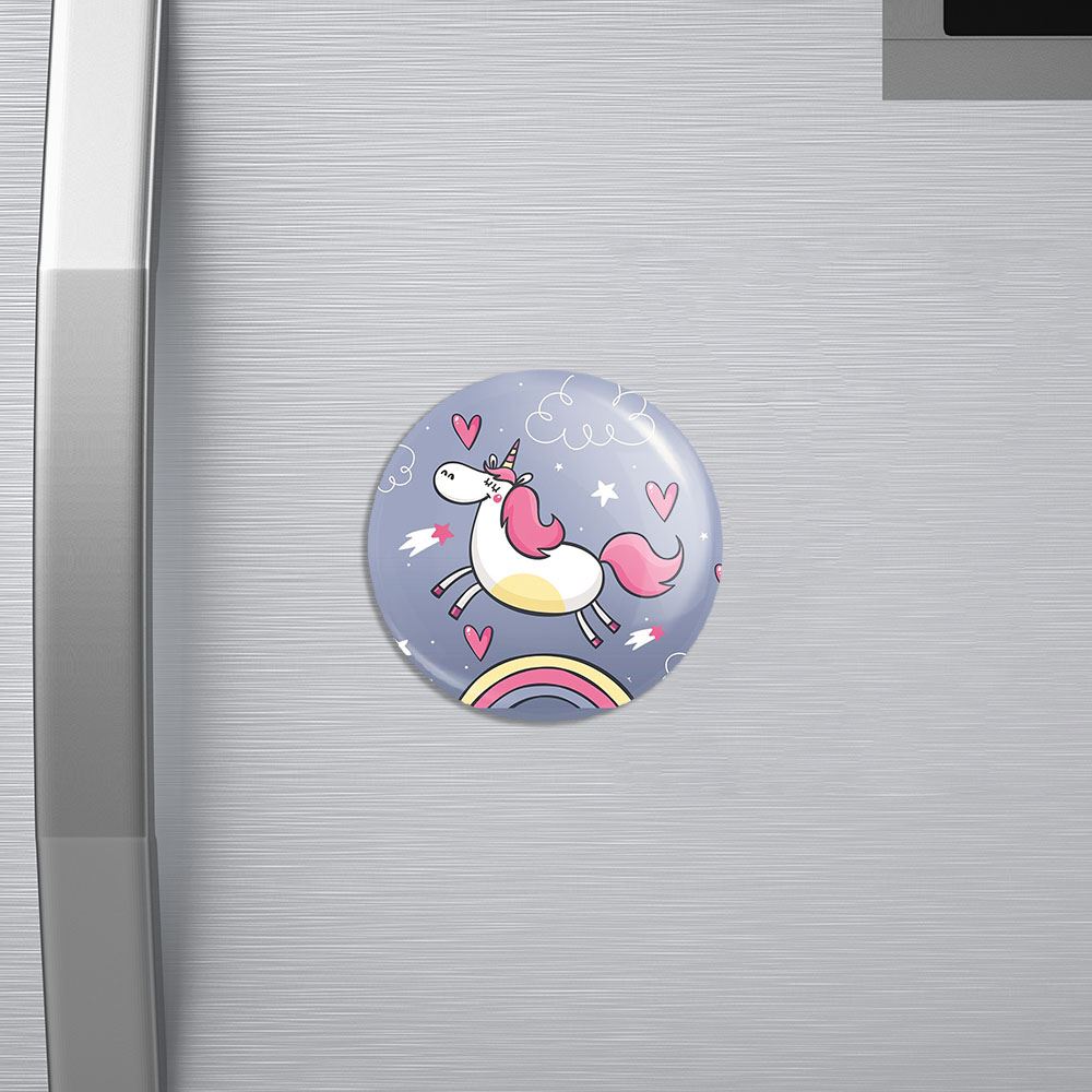 مگنت اسب تک شاخ خندالو با روکش سلفون مات مخملی ضدخش و قطعه پشتی فلزی تولید شده است که آهنربای اتمی بکار برده شده در محصول، بصورت مخفی تعبیه شده ودیده نمی شود. ضمن اینکه گیرایی بسیار بالایی داشته و به هیچ عنوان از روی یخچال نمی افتد.