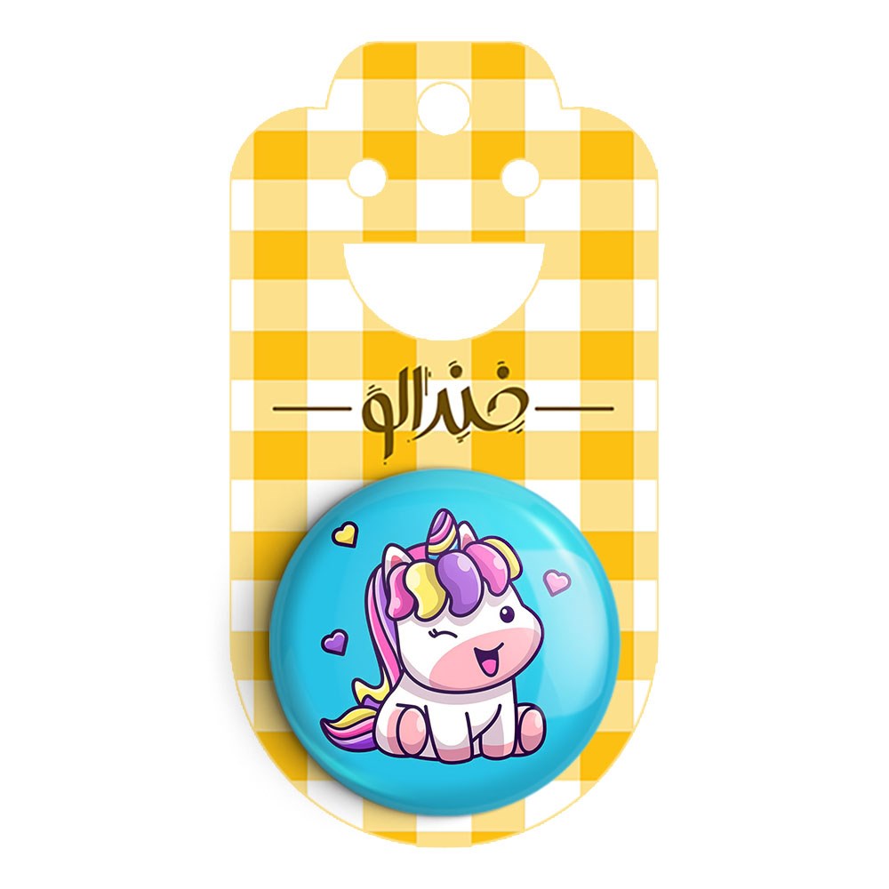 مگنت اسب تک شاخ خندالو با روکش سلفون مات مخملی ضدخش و قطعه پشتی فلزی تولید شده است که آهنربای اتمی بکار برده شده در محصول، بصورت مخفی تعبیه شده ودیده نمی شود. ضمن اینکه گیرایی بسیار بالایی داشته و به هیچ عنوان از روی یخچال نمی افتد.