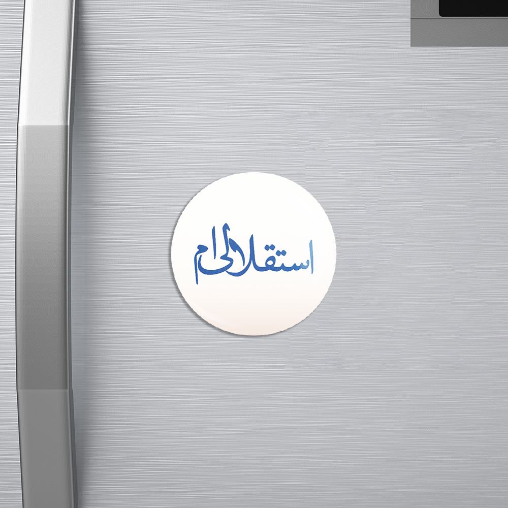 مگنت استقلال خندالو با روکش سلفون مات مخملی ضدخش و قطعه پشتی فلزی تولید شده است که آهنربای اتمی بکار برده شده در محصول، بصورت مخفی تعبیه شده ودیده نمی شود. ضمن اینکه گیرایی بسیار بالایی داشته و به هیچ عنوان از روی یخچال نمی افتد.