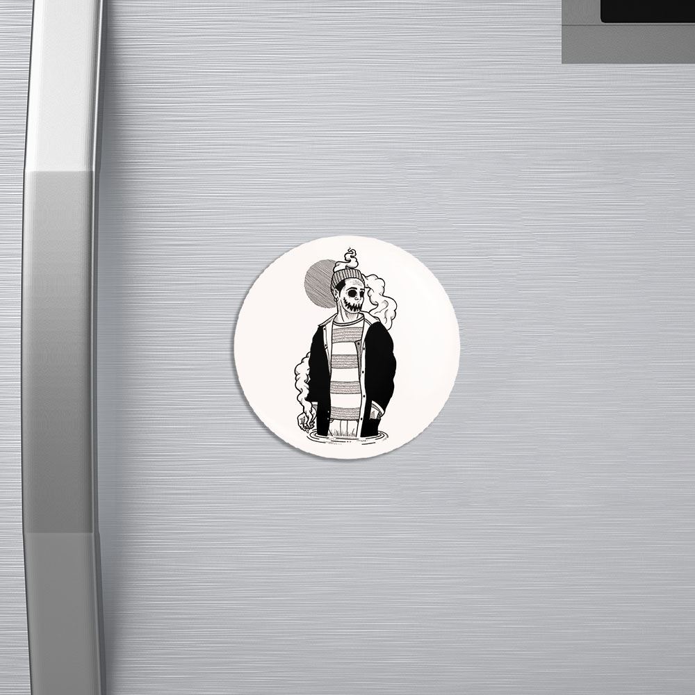 مگنت اسکلت Skleton خندالو با روکش سلفون مات مخملی ضدخش و قطعه پشتی فلزی تولید شده است که آهنربای اتمی بکار برده شده در محصول، بصورت مخفی تعبیه شده ودیده نمی شود. ضمن اینکه گیرایی بسیار بالایی داشته و به هیچ عنوان از روی یخچال نمی افتد.
