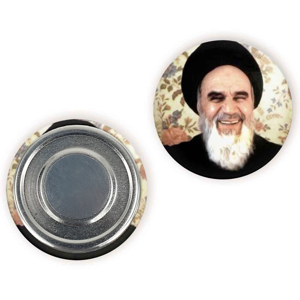 مگنت امام خمینی (ره) خندالو با روکش سلفون مات مخملی ضدخش و قطعه پشتی فلزی تولید شده است که آهنربای اتمی بکار برده شده در محصول، بصورت مخفی تعبیه شده ودیده نمی شود. ضمن اینکه گیرایی بسیار بالایی داشته و به هیچ عنوان از روی یخچال نمی افتد.
