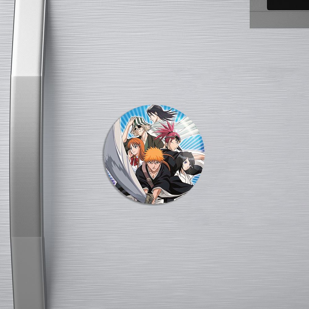مگنت انیمه بلیچ Beach خندالو با روکش سلفون مات مخملی ضدخش و قطعه پشتی فلزی تولید شده است که آهنربای اتمی بکار برده شده در محصول، بصورت مخفی تعبیه شده ودیده نمی شود. ضمن اینکه گیرایی بسیار بالایی داشته و به هیچ عنوان از روی یخچال نمی افتد.