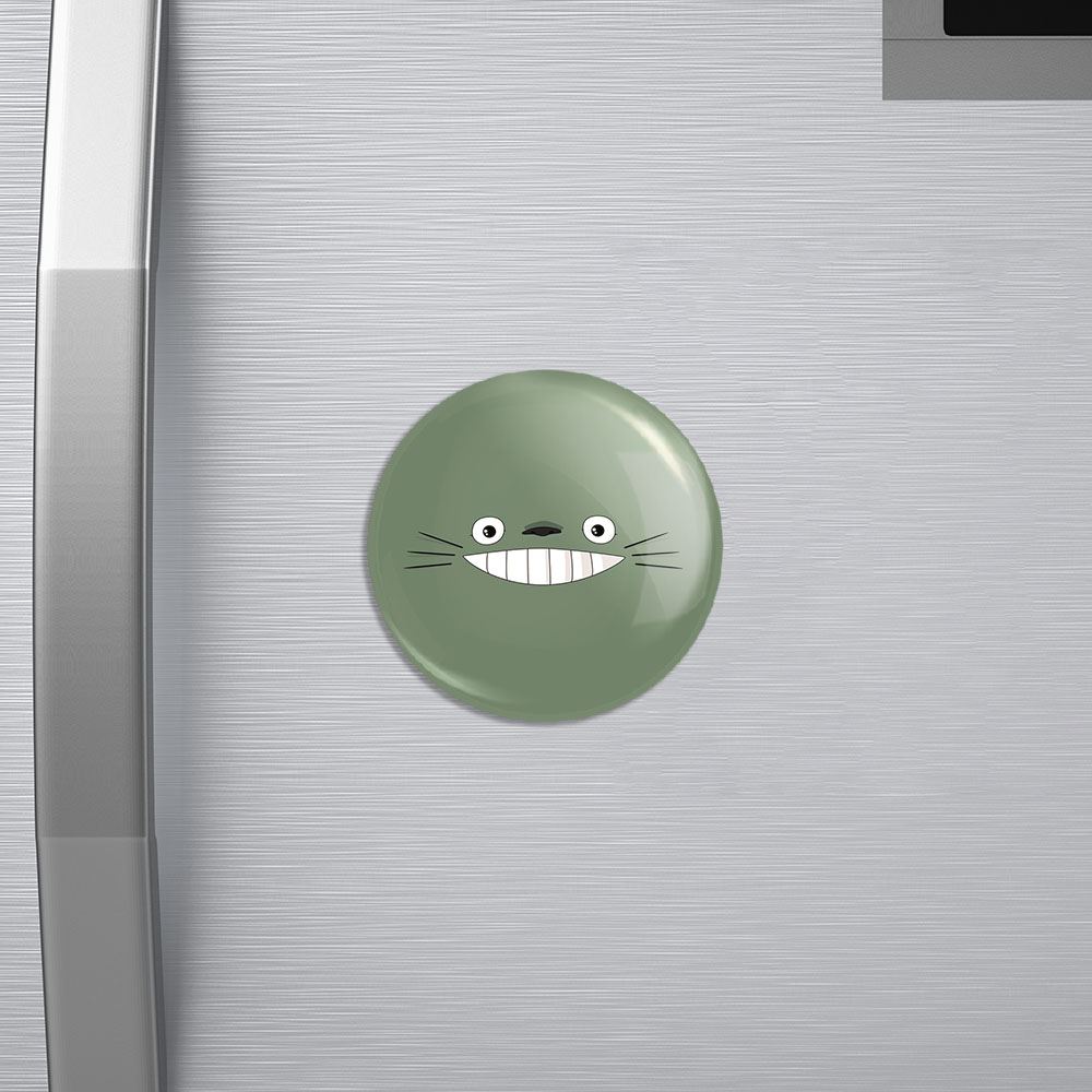 مگنت انیمه توتورو Totoro خندالو با روکش سلفون مات مخملی ضدخش و قطعه پشتی فلزی تولید شده است که آهنربای اتمی بکار برده شده در محصول، بصورت مخفی تعبیه شده ودیده نمی شود. ضمن اینکه گیرایی بسیار بالایی داشته و به هیچ عنوان از روی یخچال نمی افتد.