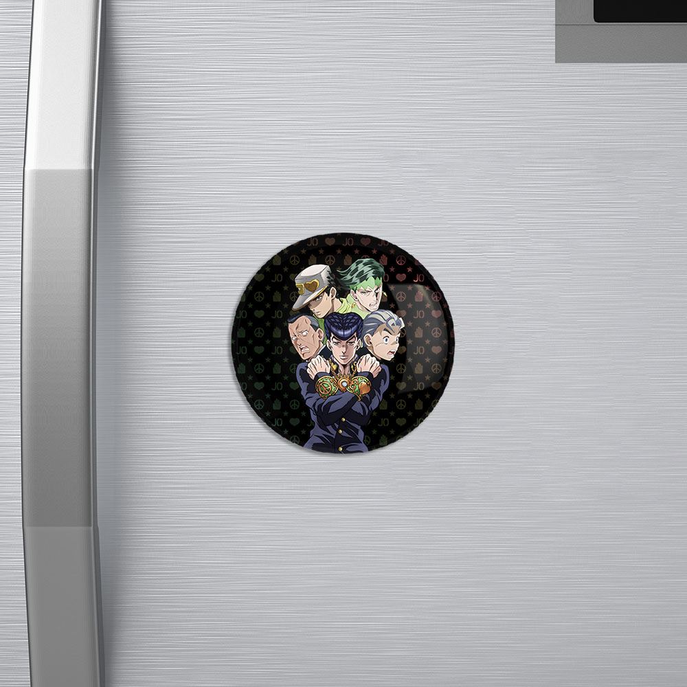 مگنت انیمه جوجو Jojo خندالو با روکش سلفون مات مخملی ضدخش و قطعه پشتی فلزی تولید شده است که آهنربای اتمی بکار برده شده در محصول، بصورت مخفی تعبیه شده ودیده نمی شود. ضمن اینکه گیرایی بسیار بالایی داشته و به هیچ عنوان از روی یخچال نمی افتد.